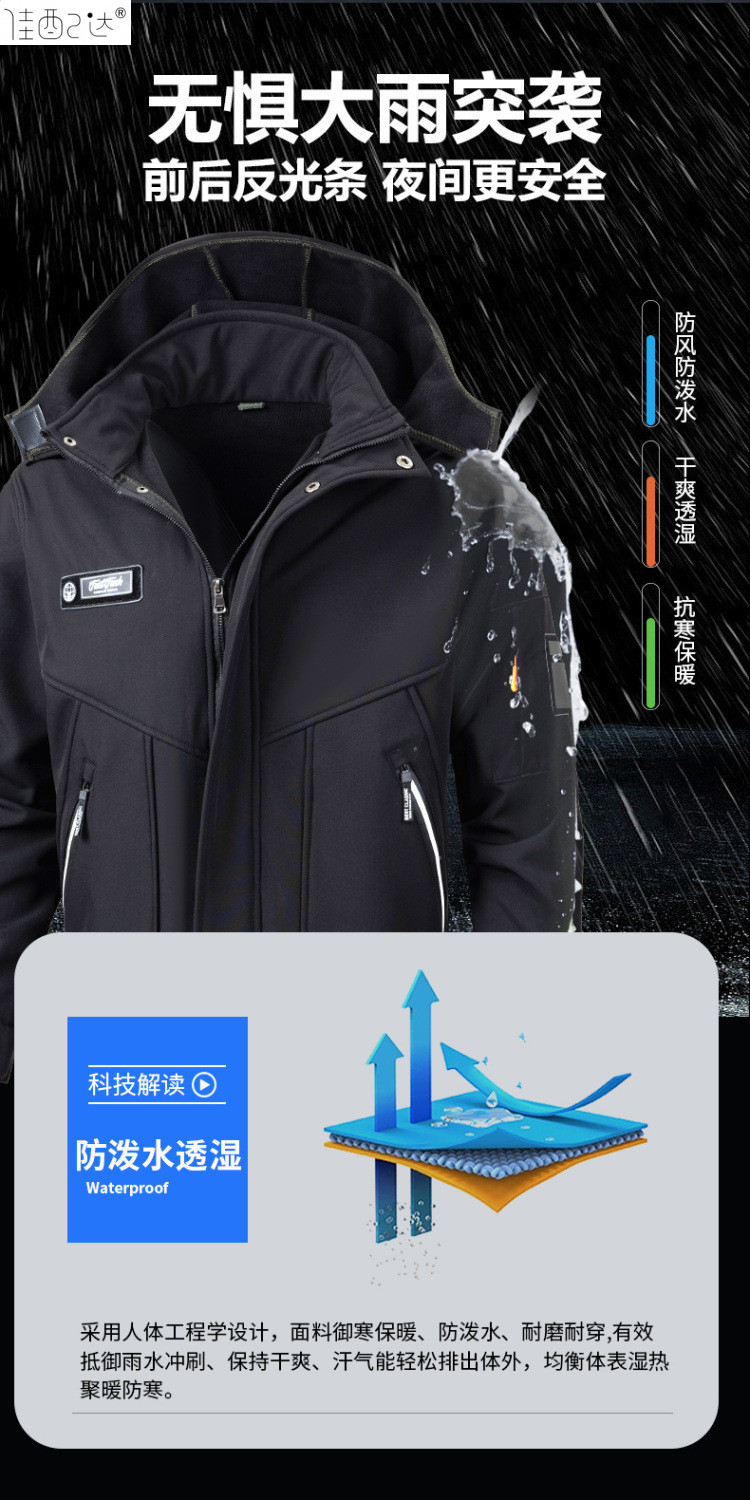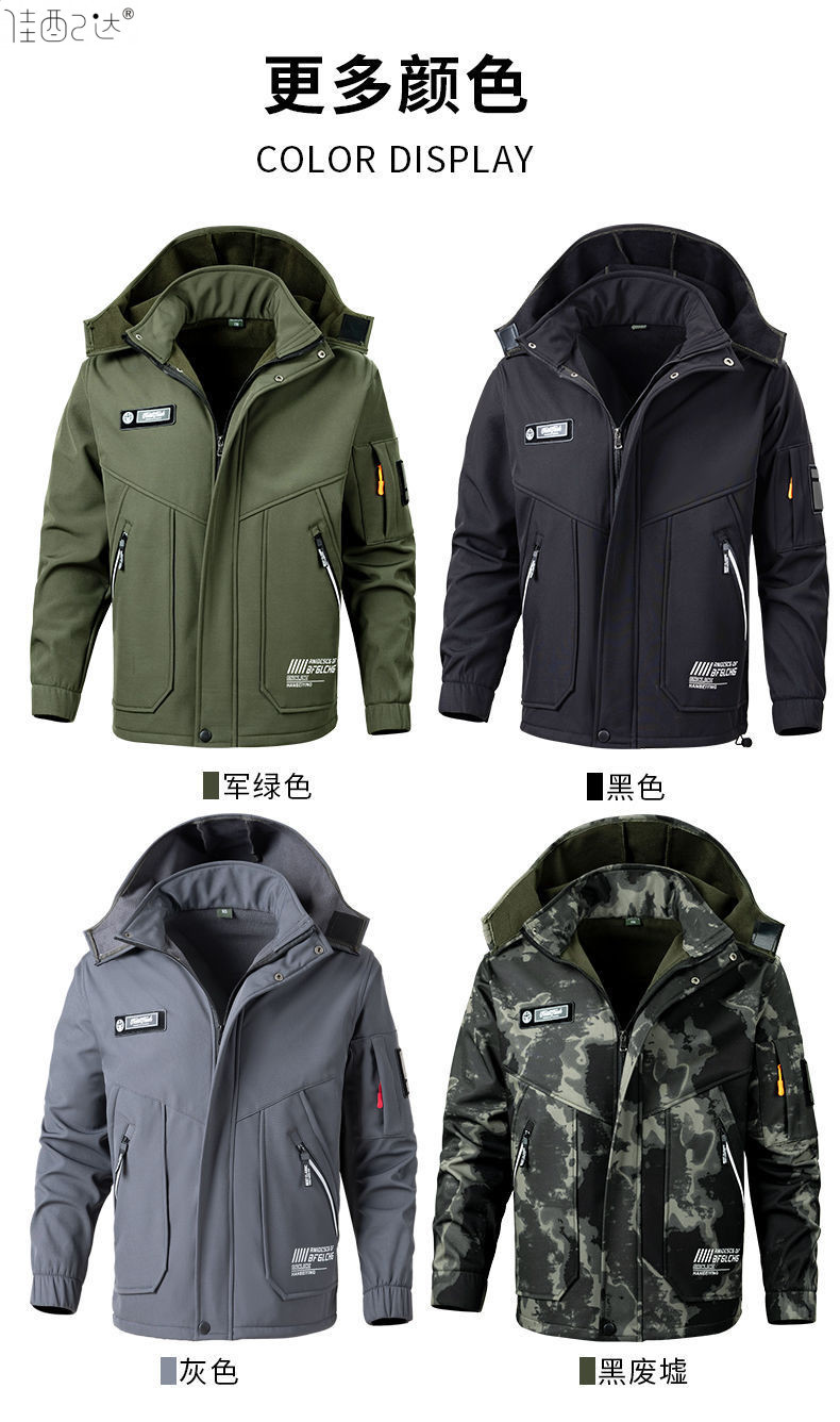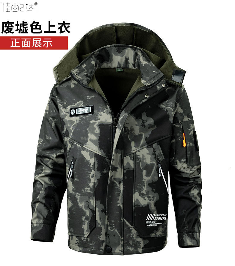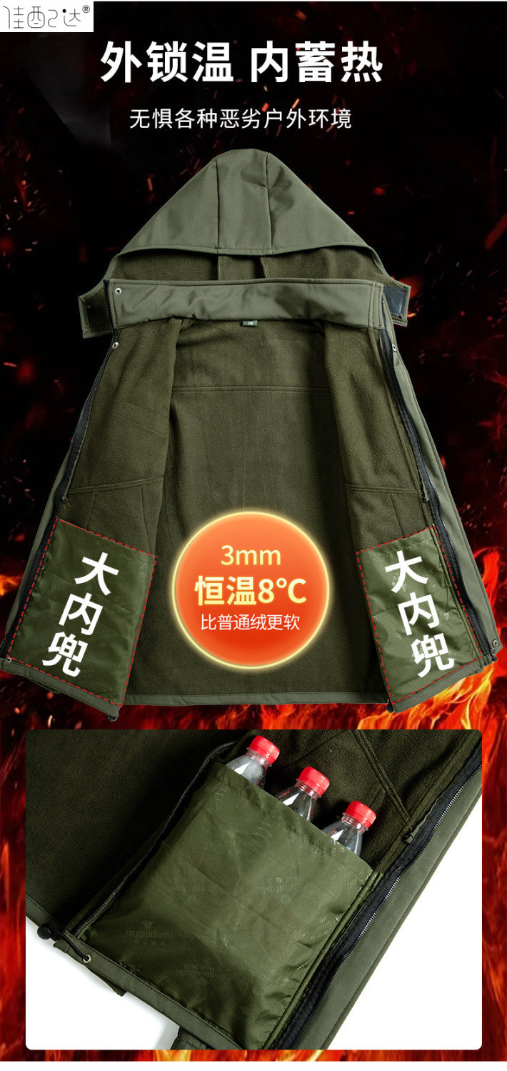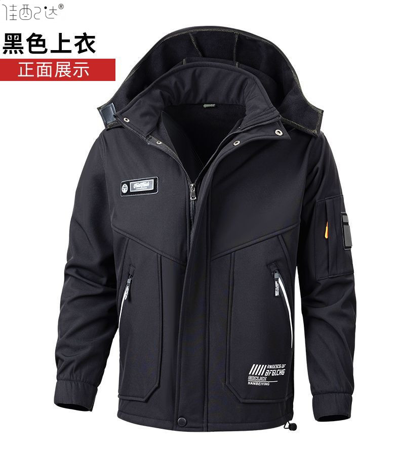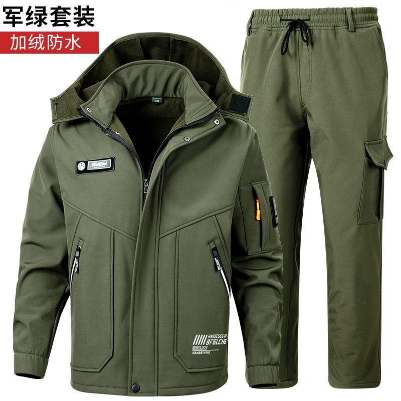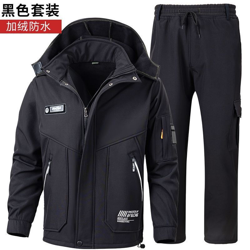 가을과 겨울 기모 두꺼운 충전 의류 세트 남성 및 여성 방풍 방수 야외 등산 의류 냉난방 유지 내마모성 툴링