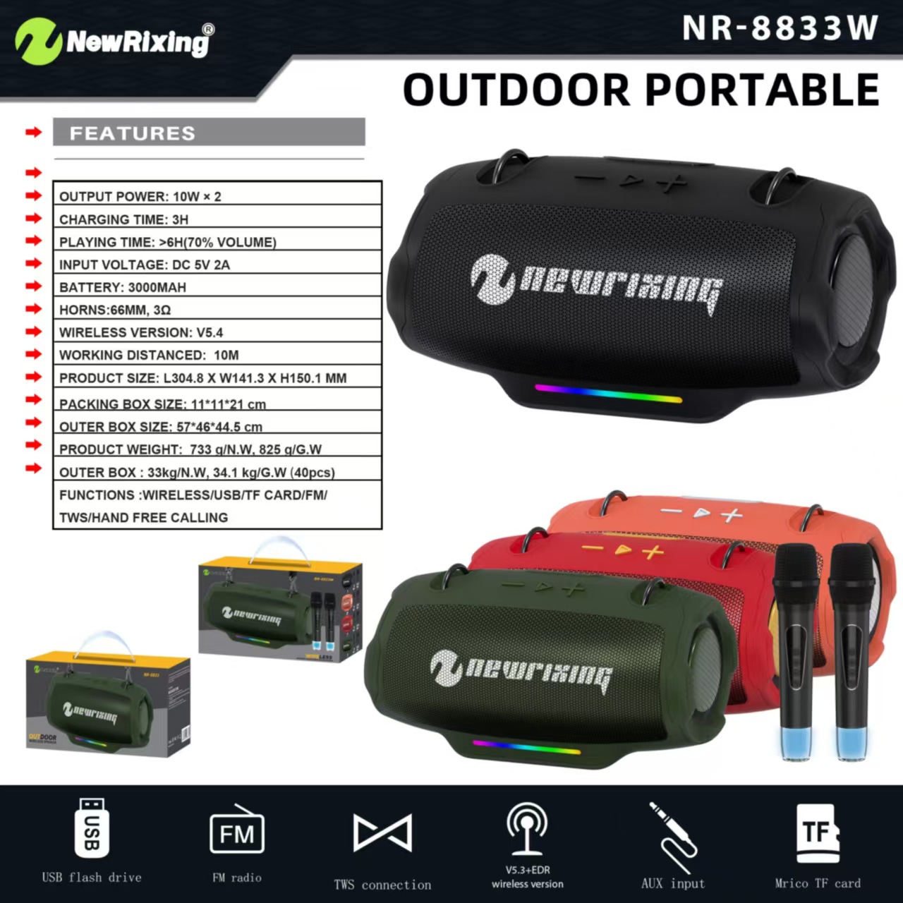 功能:蓝牙连接/支持USB、TF卡、AUX音频播放/支持循环充电