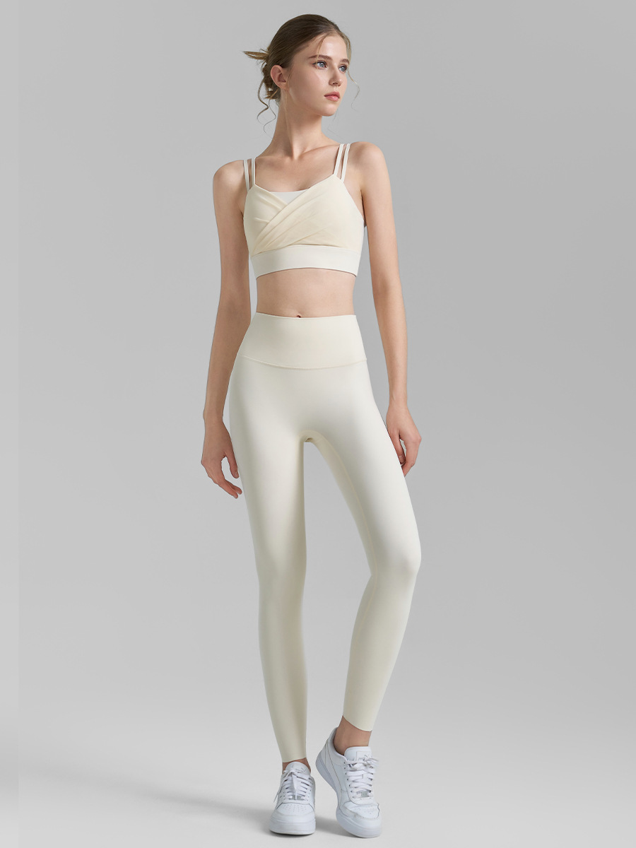 가짜 투피스 순수 욕망 스타일 요가 조끼 여성 2025 봄/여름 알몸 요가 바지 세트 투피스 더블 얇은 어깨 끈