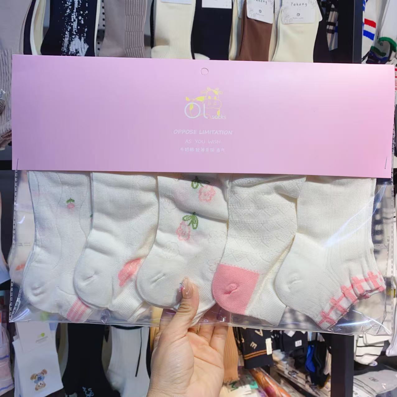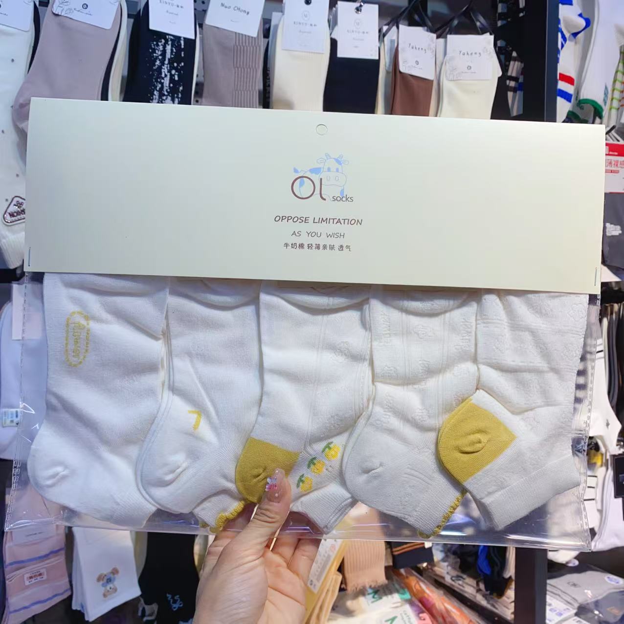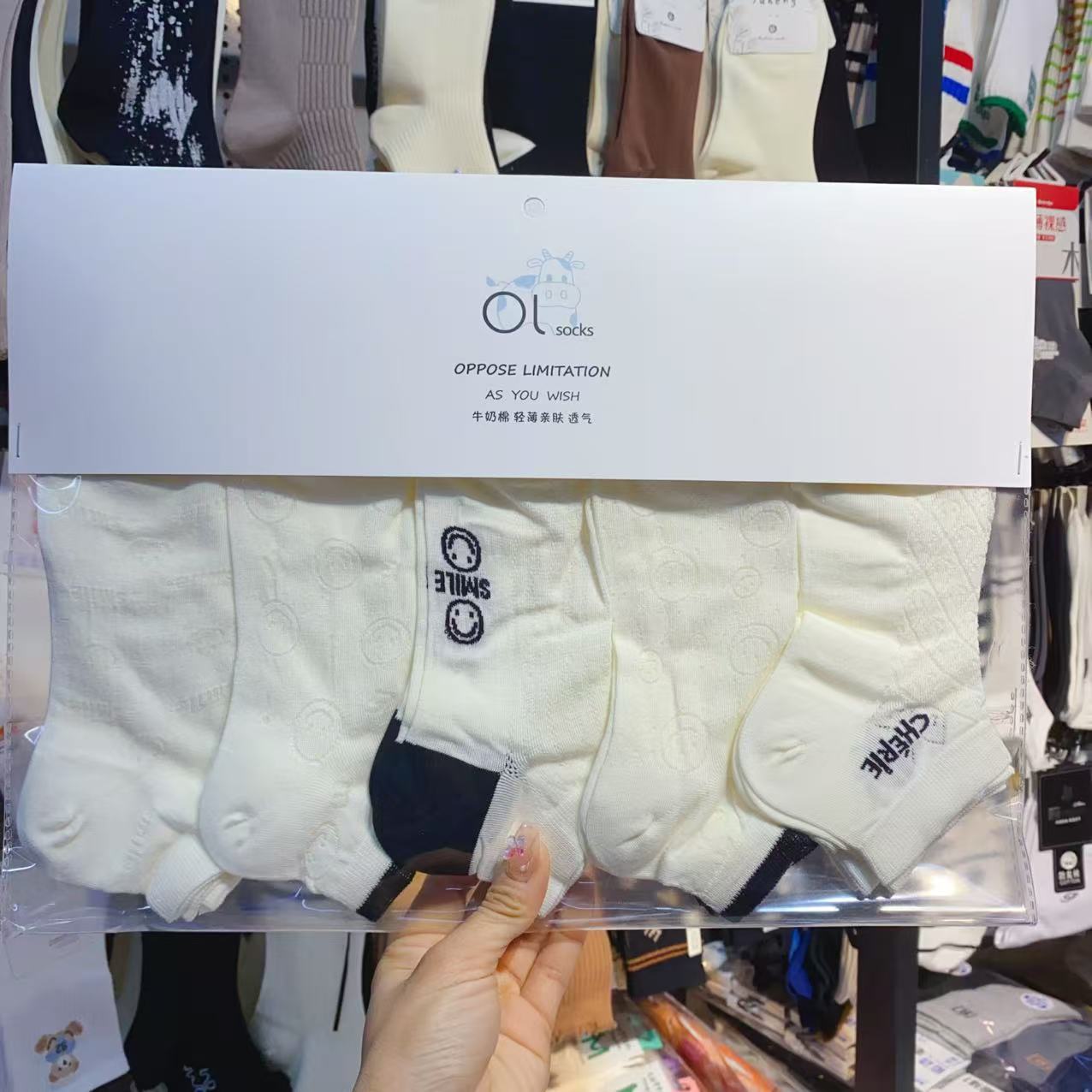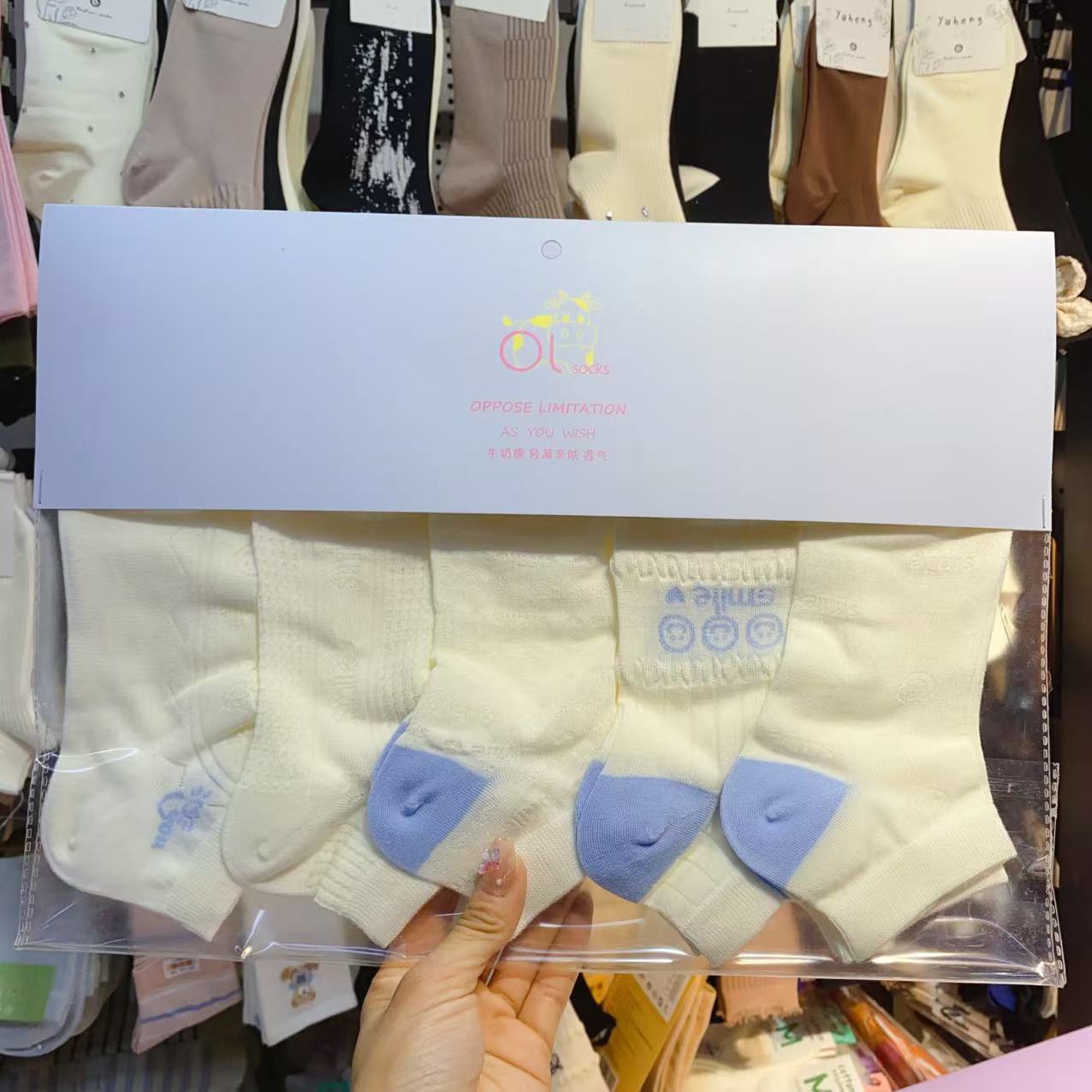 OL 새로운 우유 빛면 피부 친화적 인 메쉬 통기성 일본 학생 컬러 대학 스타일 패션 로우 허리 보트 양말