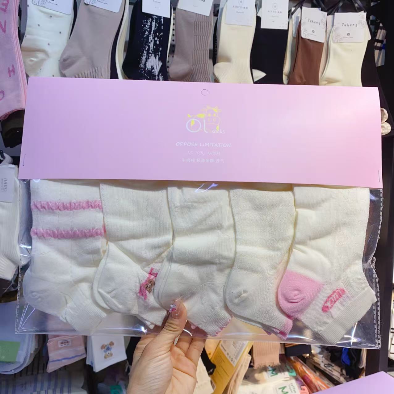OL 새로운 우유 빛면 피부 친화적 인 메쉬 통기성 일본 학생 컬러 대학 스타일 패션 로우 허리 보트 양말스토어 가기
