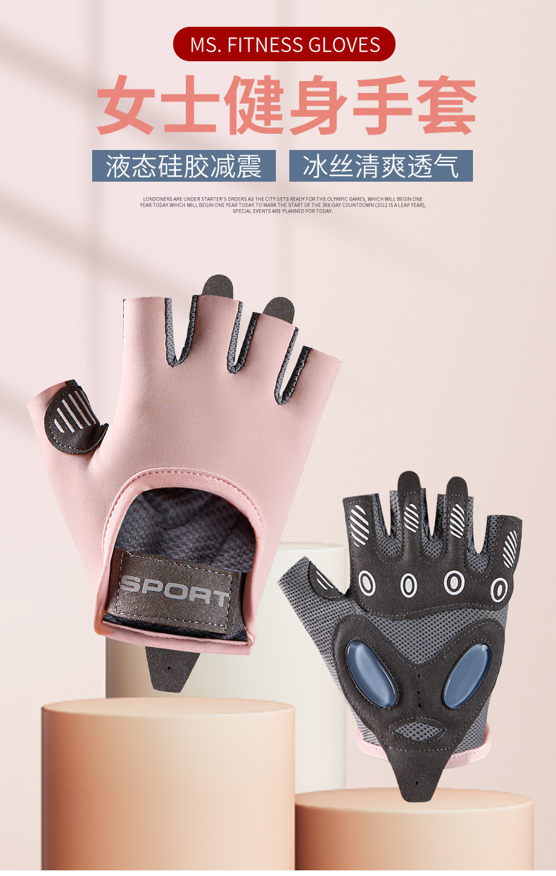 피트니스 장갑 여성용 미끄럼 방지 스포츠 착용 방지 에어 쿠션 충격 흡수 아이스 실크 통기성 요가 반 손가락 티미를 타고스토어 가기