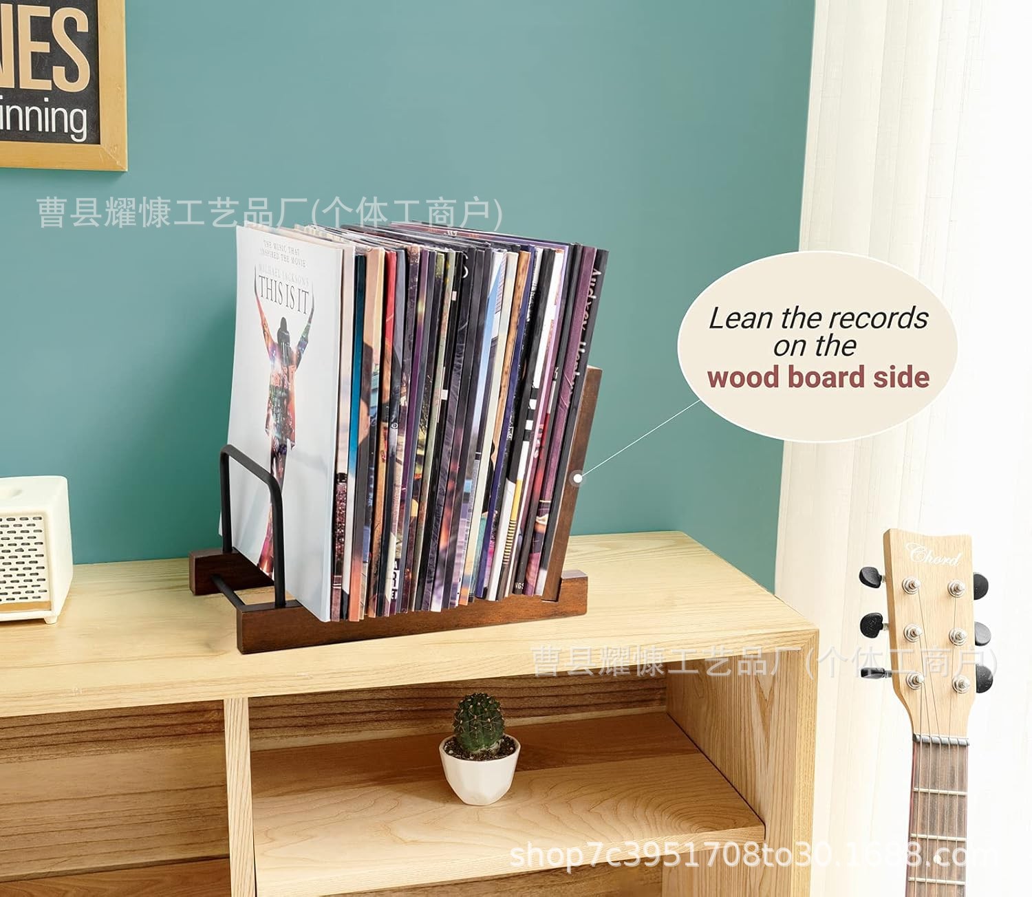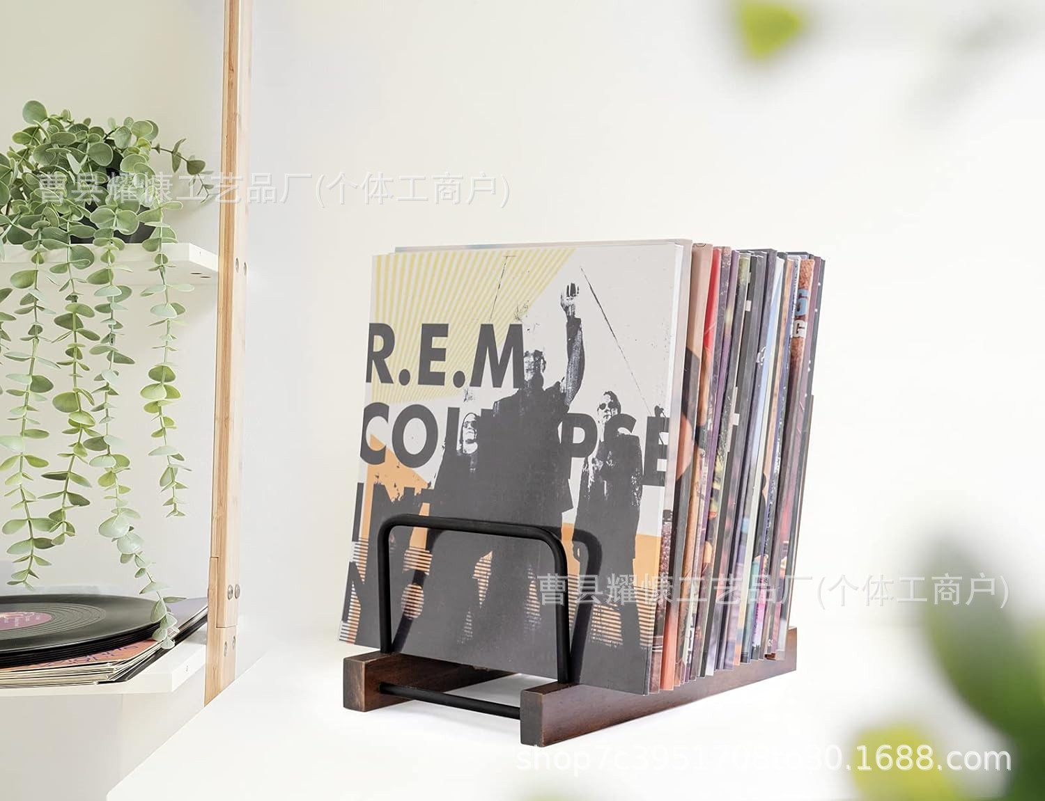 나무 비닐 레코드 랙 나무 CD 기록 저장 디스플레이 랙 가정용 데스크탑 철 및 목재 결합 기록 핏 랙