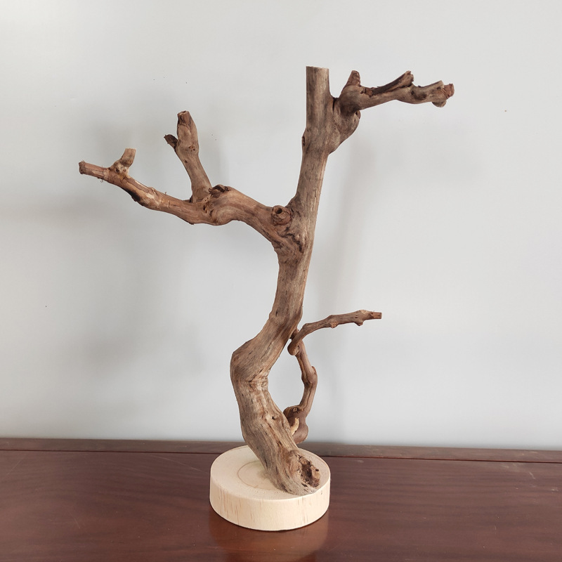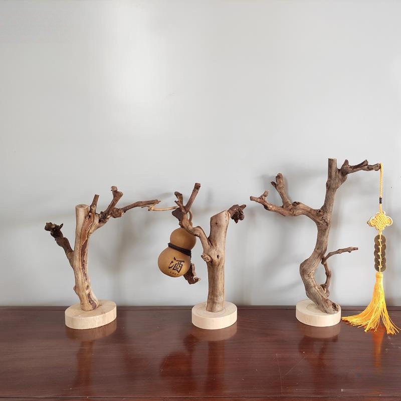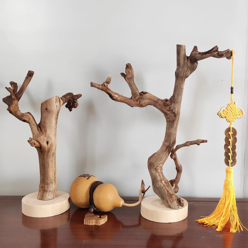 바닥 브래킷이있는 로그 브랜치 책장 거실 커피 테이블 장식품 수제 보석 솔리드 우드 브래킷
