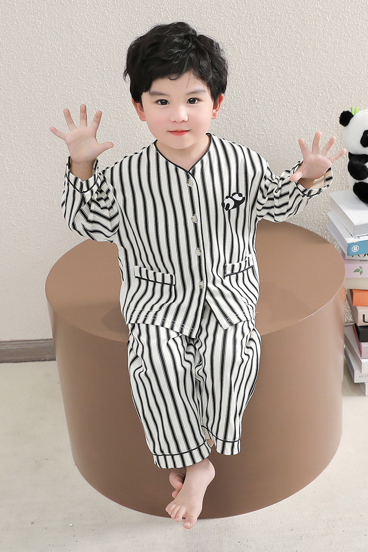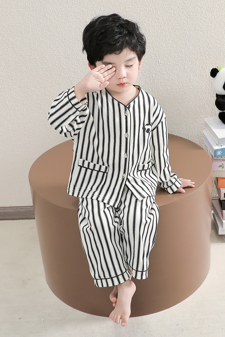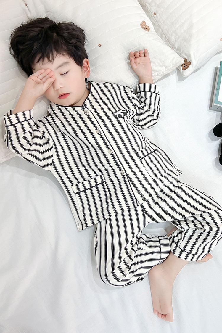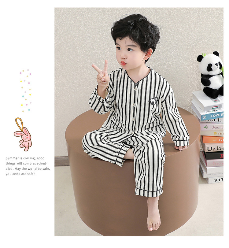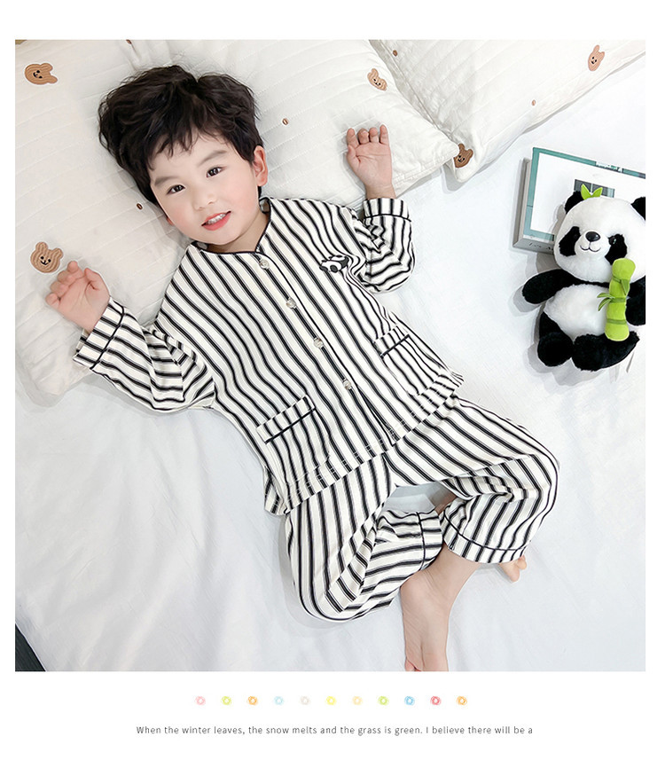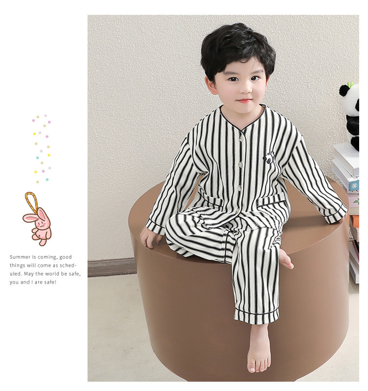 소년의 줄무늬 잠옷 봄과 가을 순수한면 아기 소년의 긴 소매 세트 여름 얇은 아이들의 집 옷스토어 가기