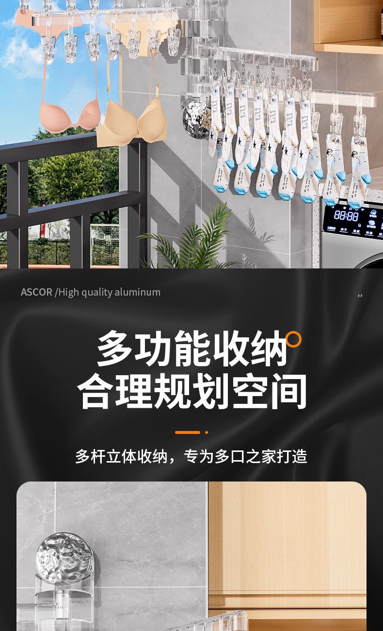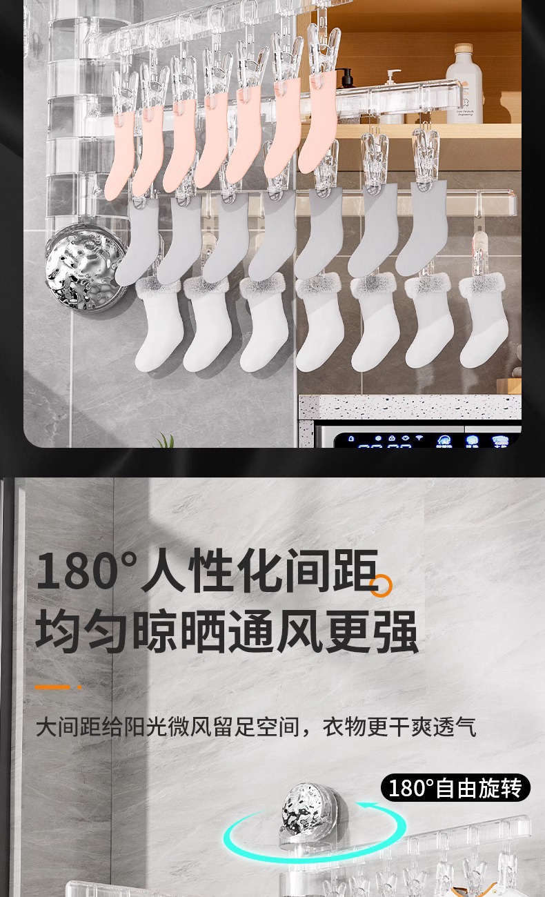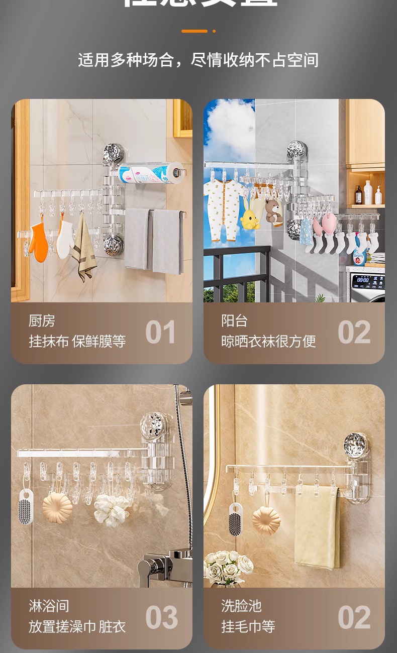 흡입 컵 접히는 건조 랙 타월 랙 가정용 발코니 실내 건조 양말 비 천공 멀티 클립 건조 랙