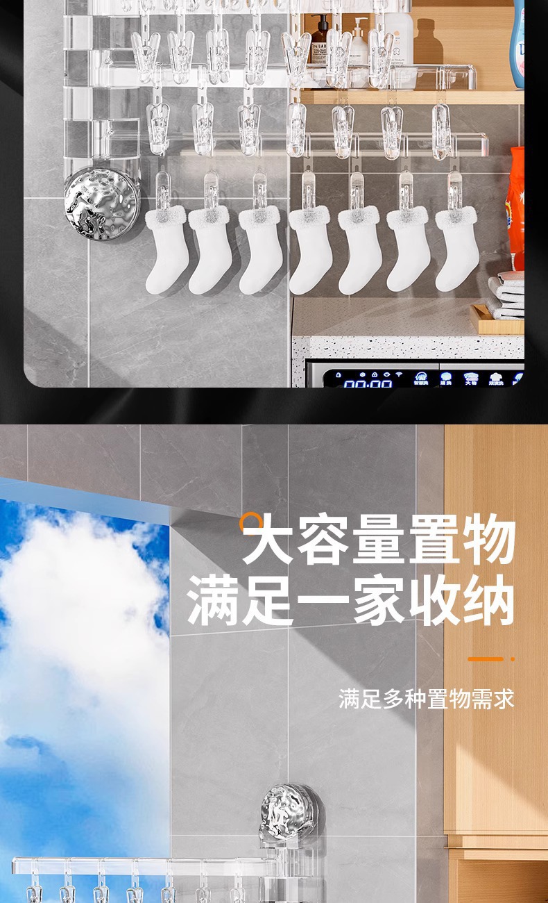 흡입 컵 접히는 건조 랙 타월 랙 가정용 발코니 실내 건조 양말 비 천공 멀티 클립 건조 랙스토어 가기