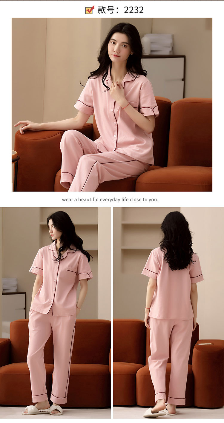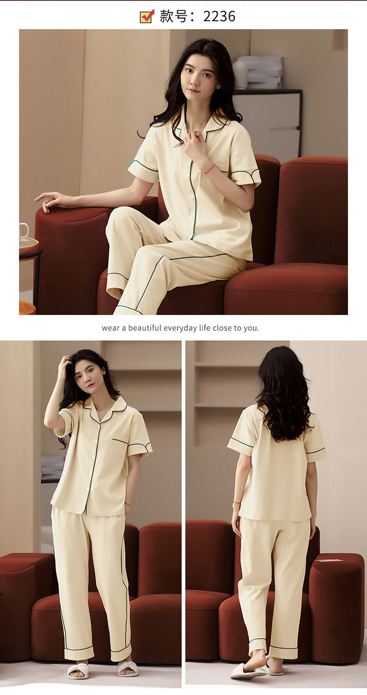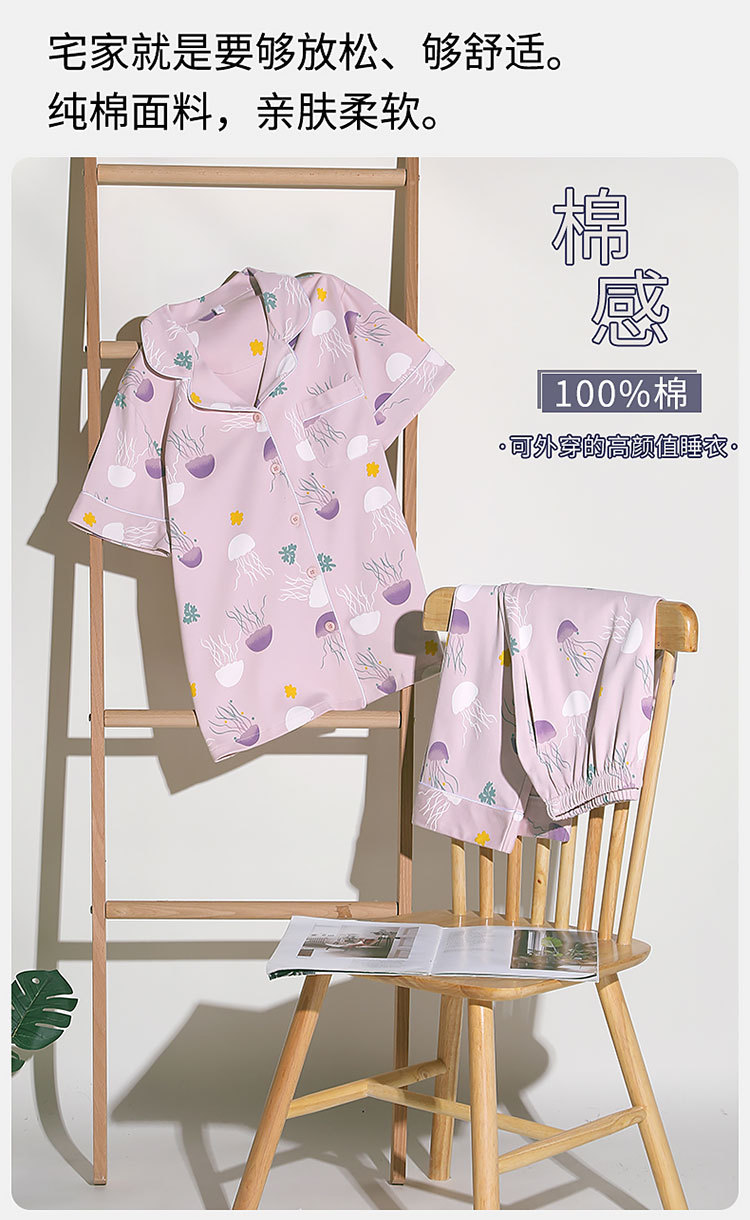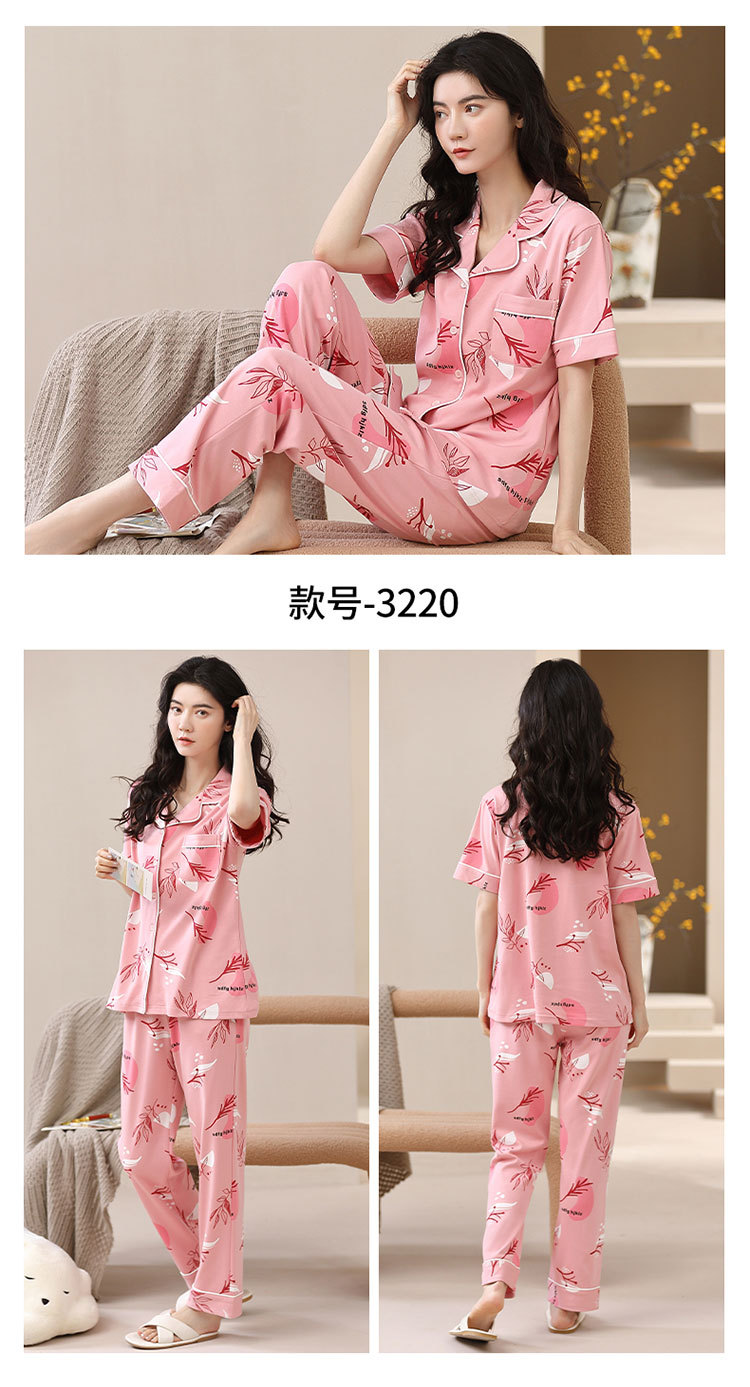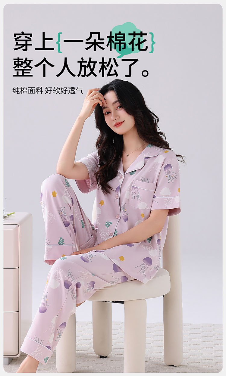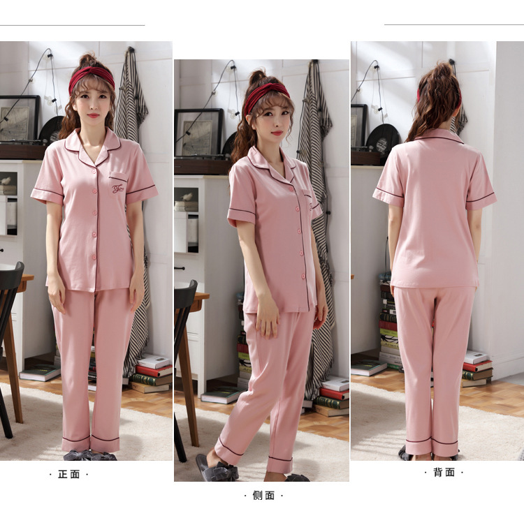 코튼 파자마 여성의 여름 새로운 카디건 반팔 바지 얇은 코튼 홈 옷 캐주얼 아우터 2 피스 세트스토어 가기