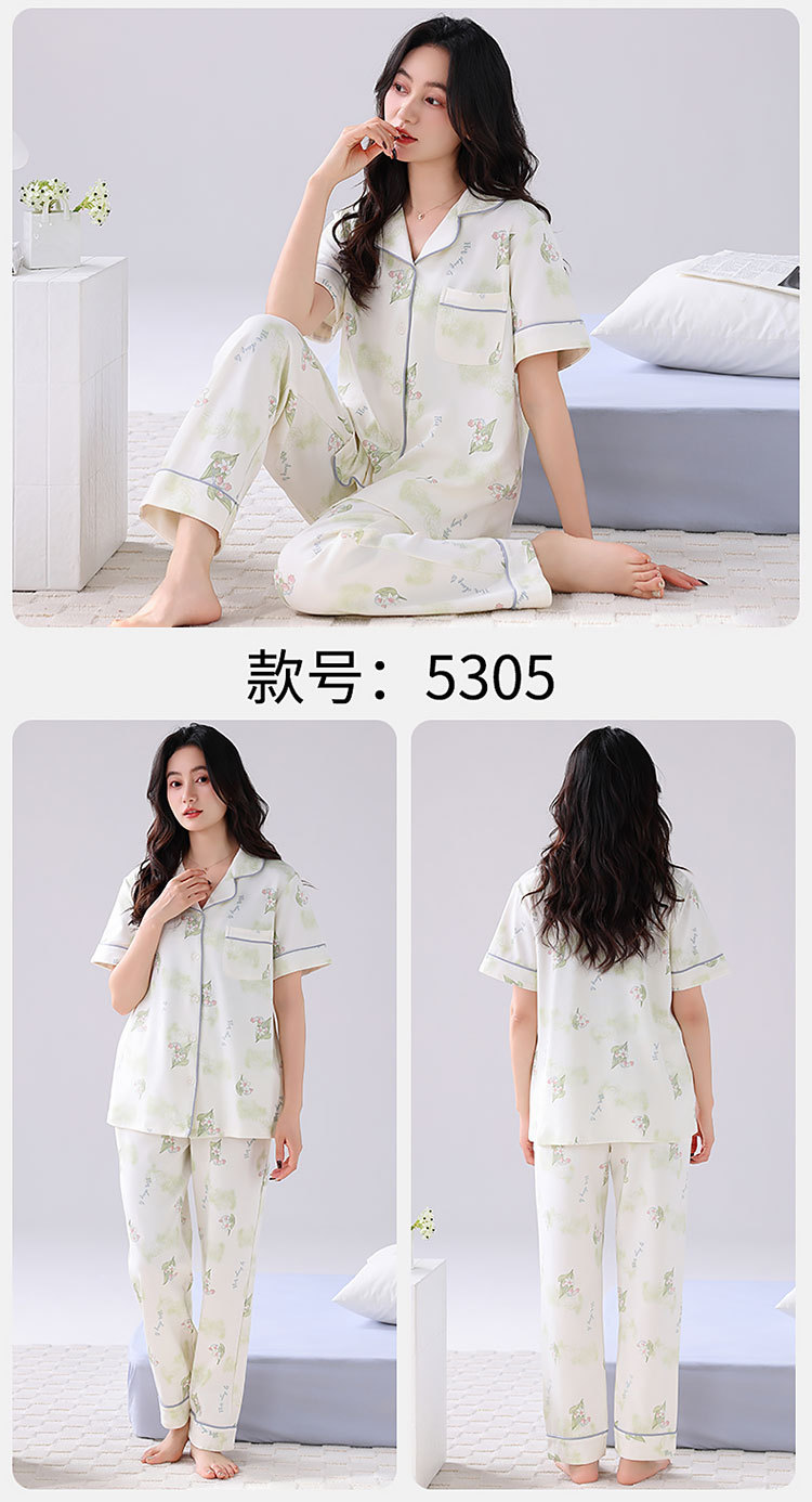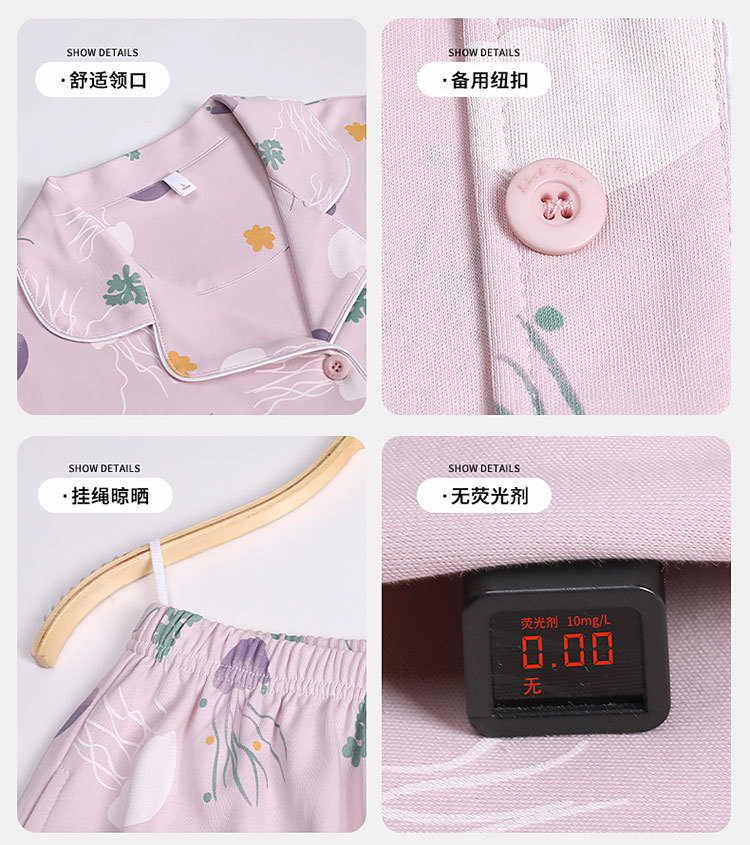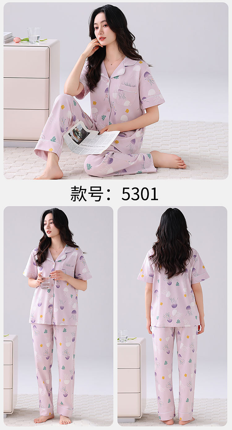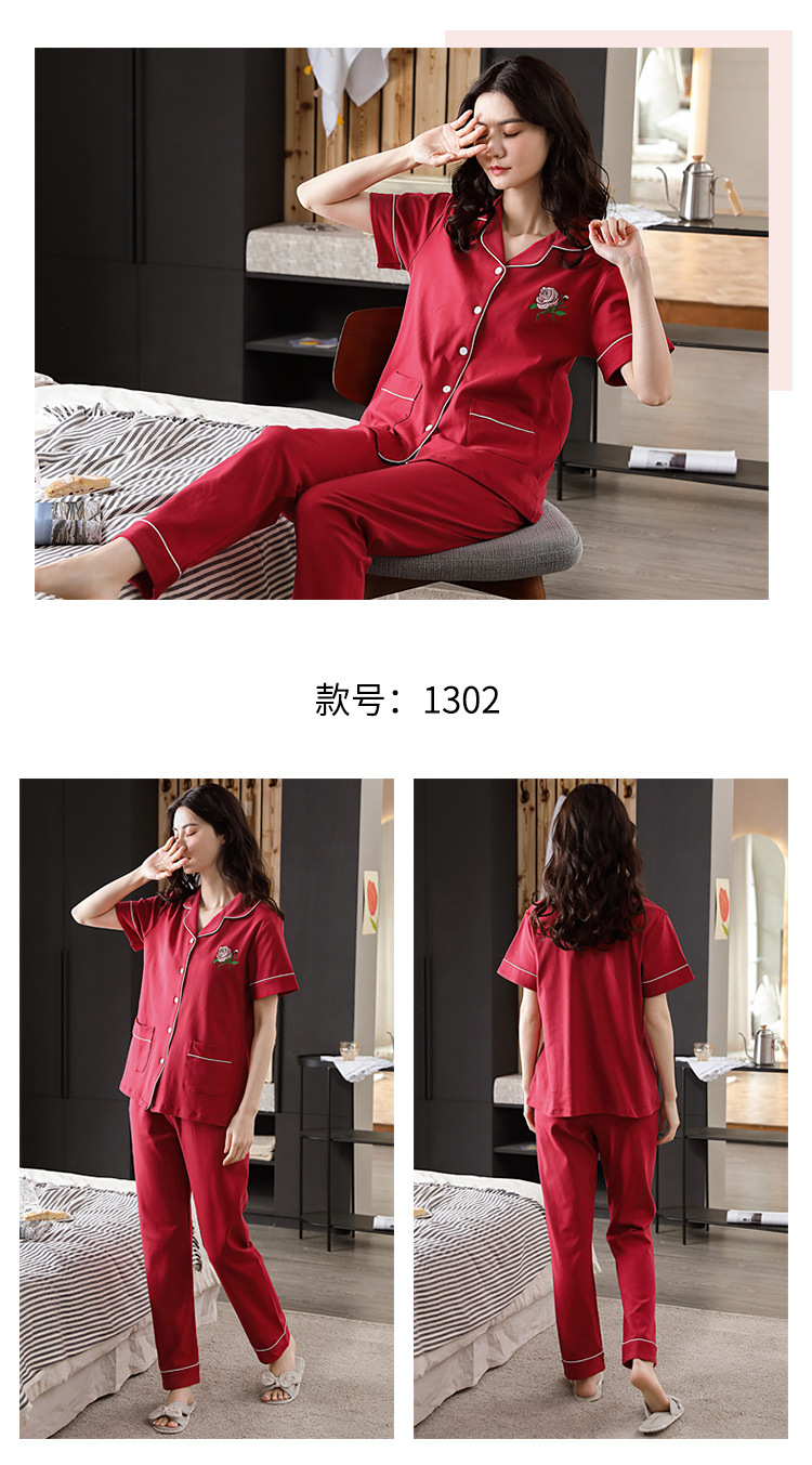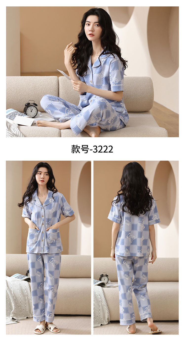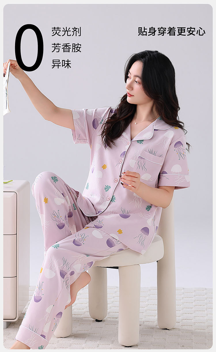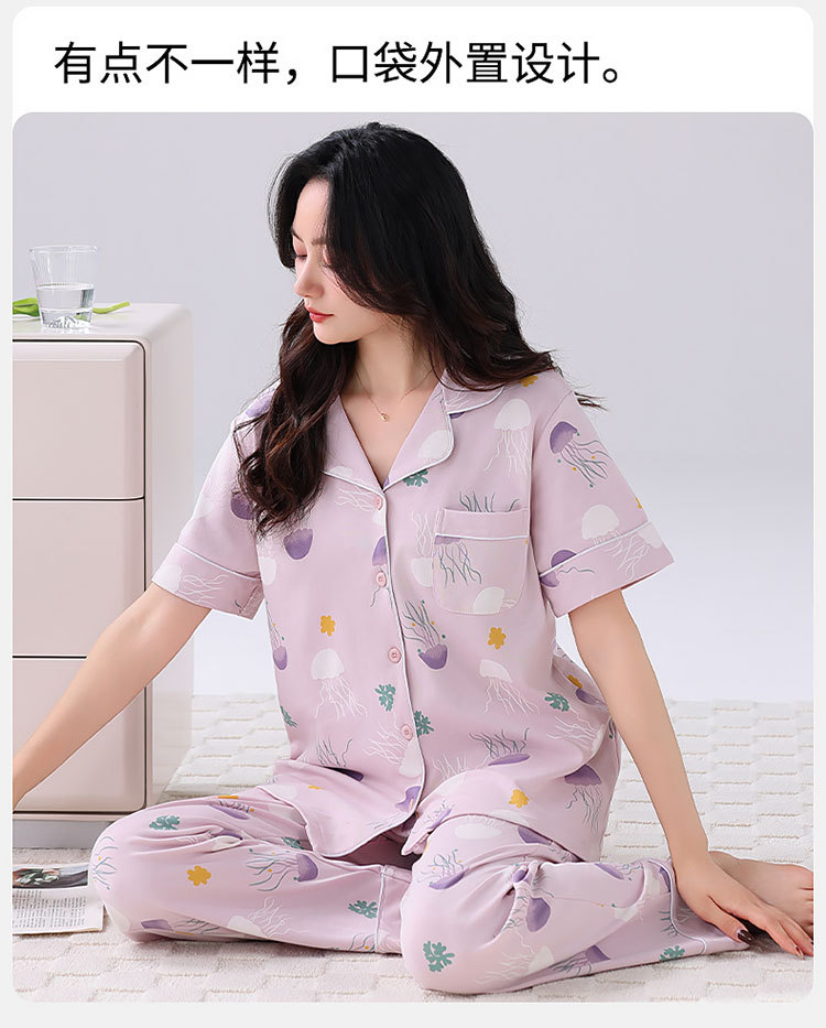 코튼 파자마 여성의 여름 새로운 카디건 반팔 바지 얇은 코튼 홈 옷 캐주얼 아우터 2 피스 세트스토어 가기