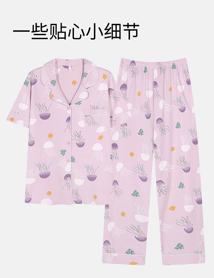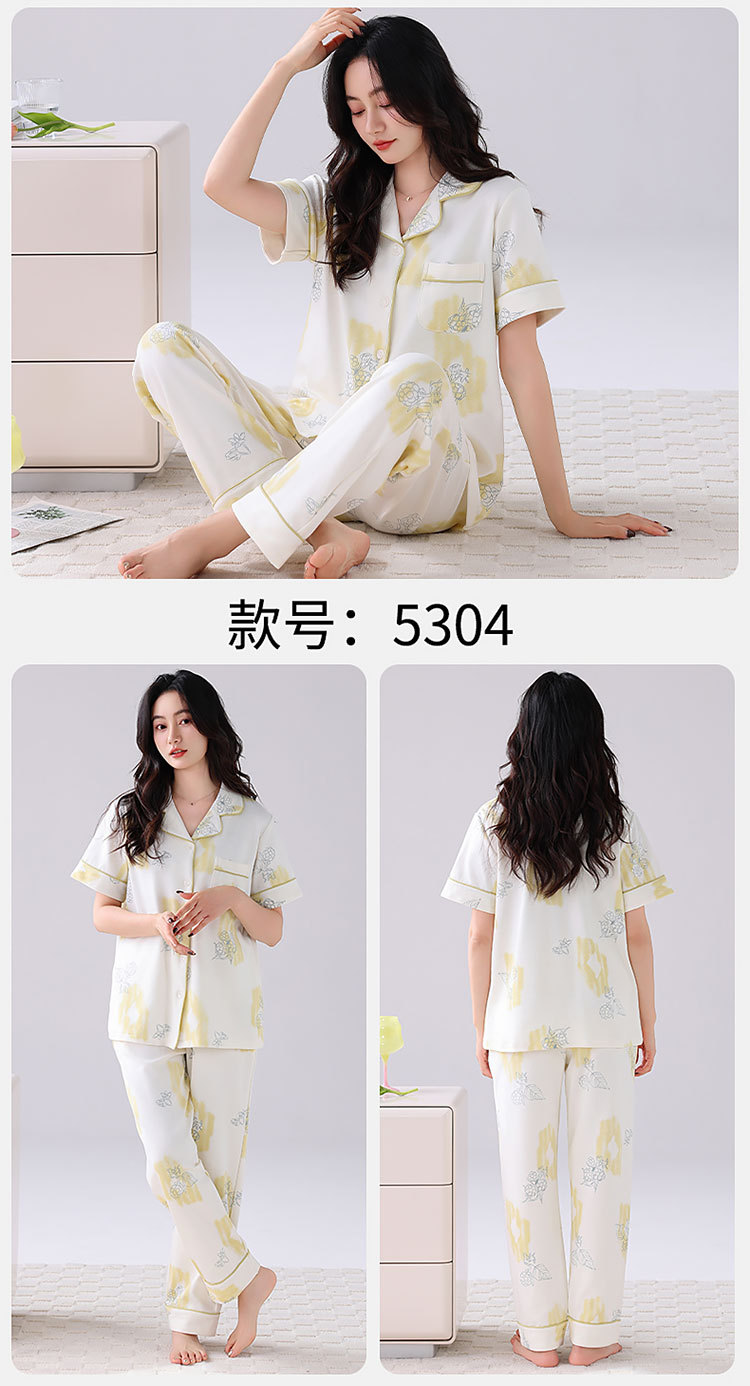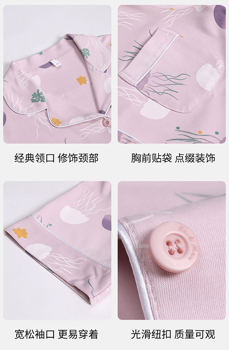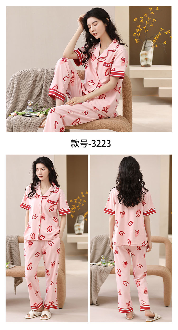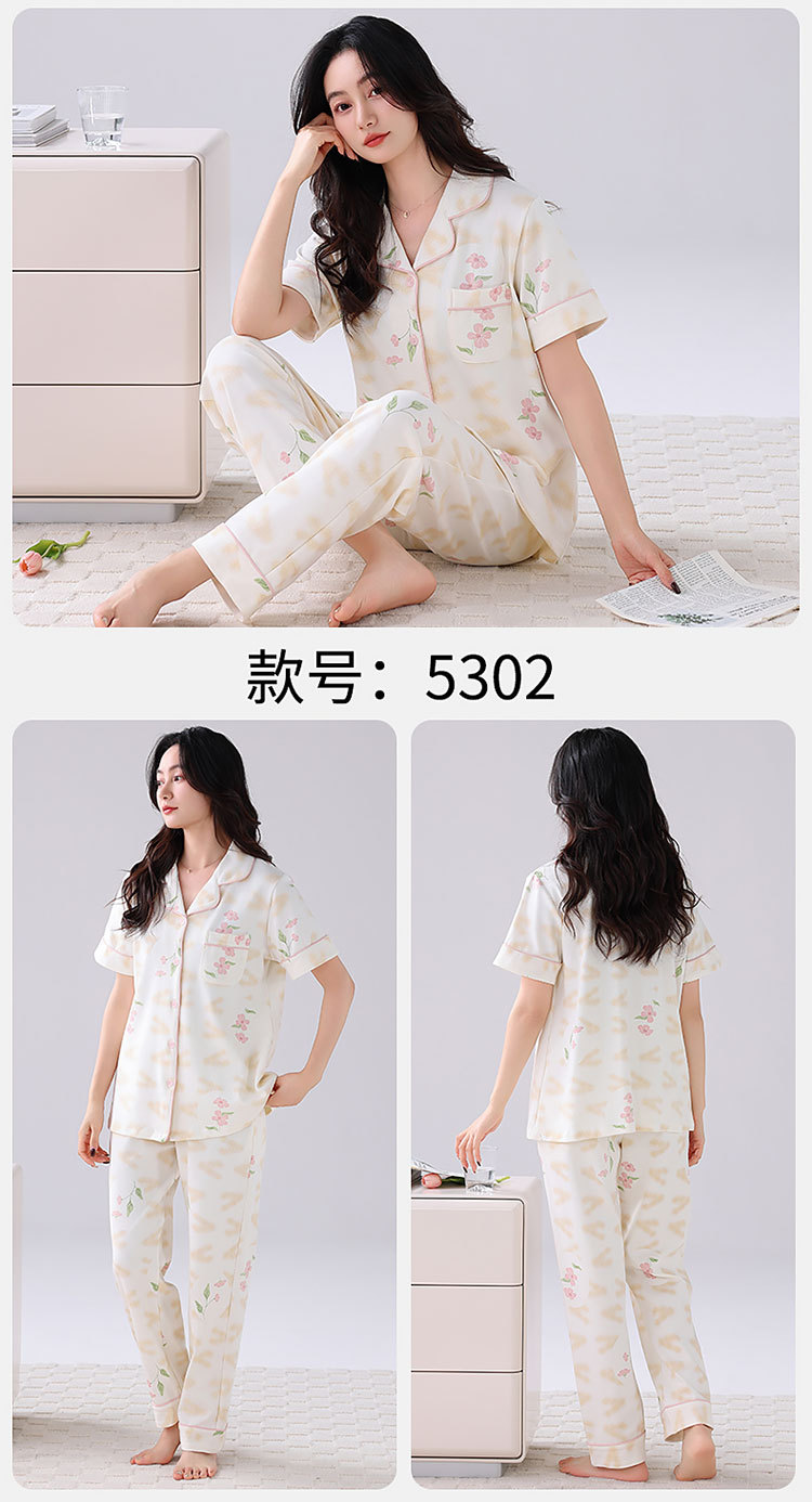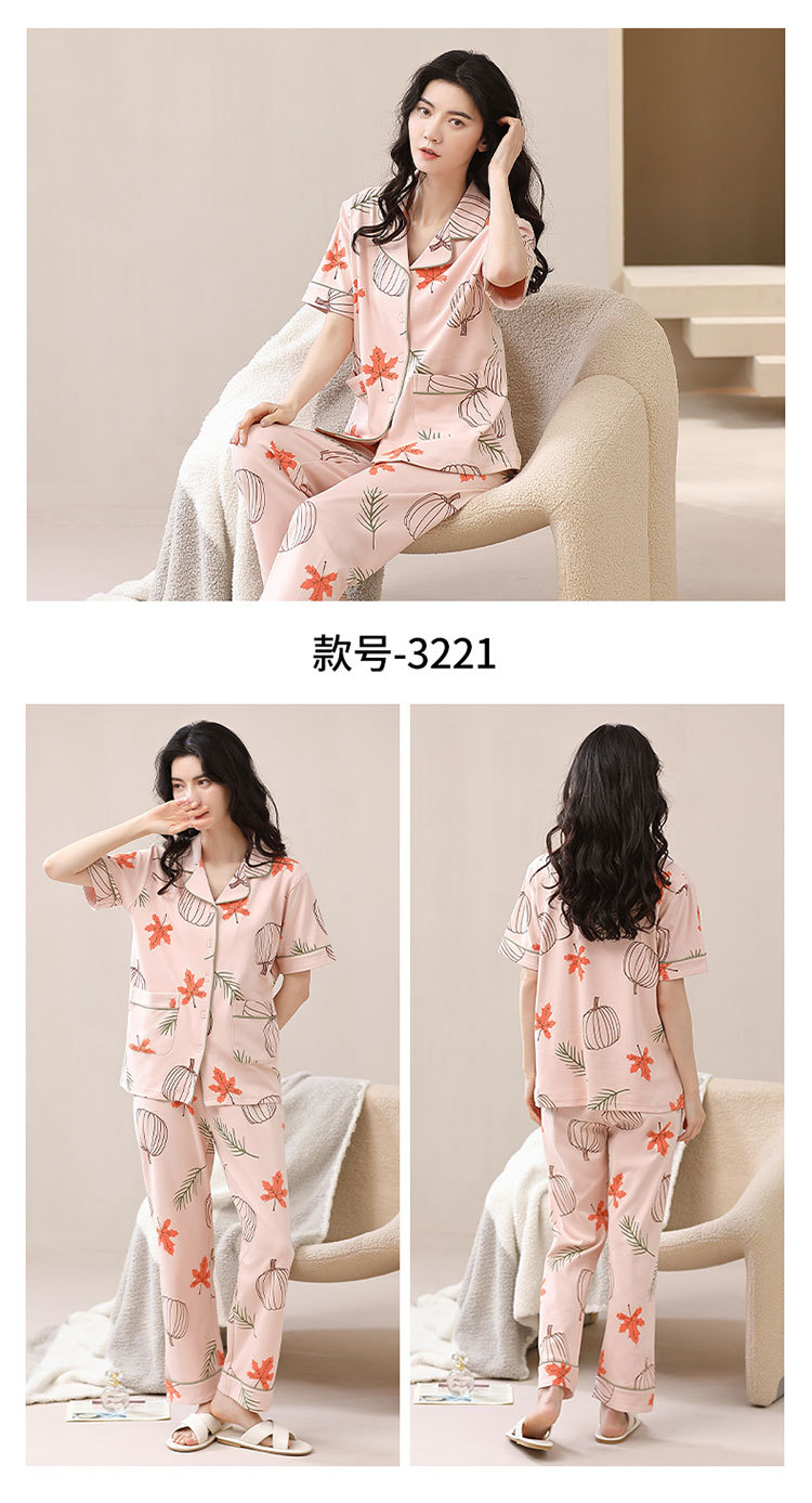 코튼 파자마 여성의 여름 새로운 카디건 반팔 바지 얇은 코튼 홈 옷 캐주얼 아우터 2 피스 세트스토어 가기
