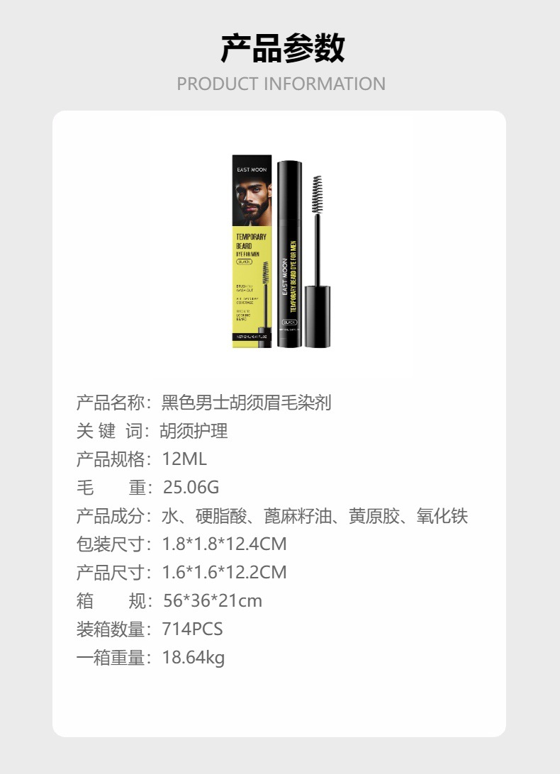 EAST MOON 흑인 남성 수염 눈썹 염색 보습 남성 수염은 자연 탈색되지 않습니다.스토어 가기