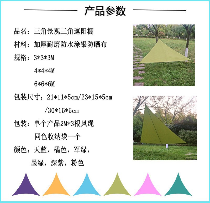 국경 간 캐노피 텐트 대형 안뜰 태양 보호 차양 항해 야외 캠핑 실버 코팅 삼각형 캐노피 Pergola 천막