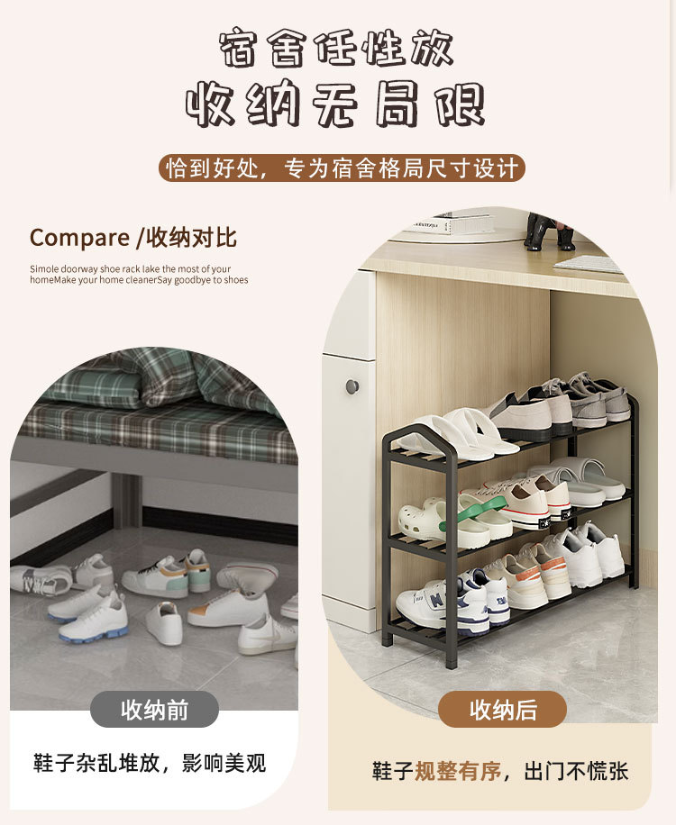간단한 신발장 가정용 현관 수납장 어린이 기숙사 임대 주택 입구용 금속 다층 신발장 수납 선반