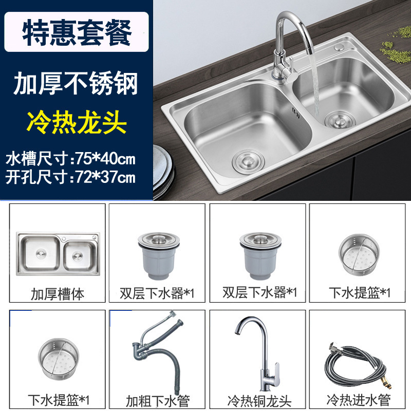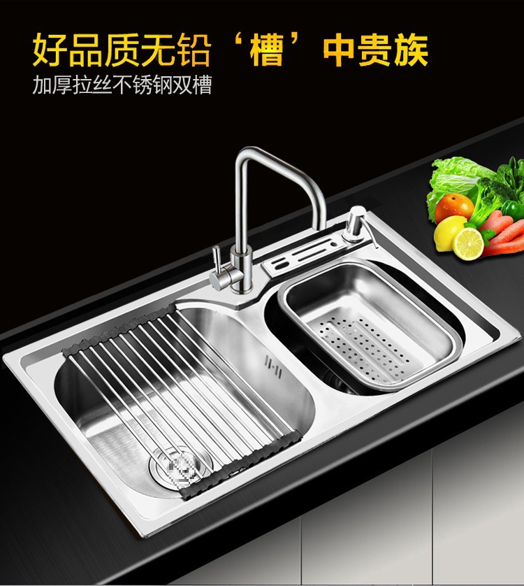 주방 물 통합 싱크대 스테인레스 스틸 야채 세척 분지 두 번 싱크대 두껍게 닦은 야채 세척 분지 두 배 싱크