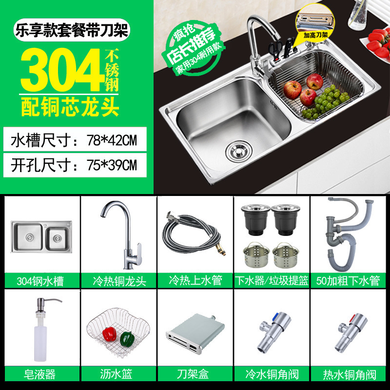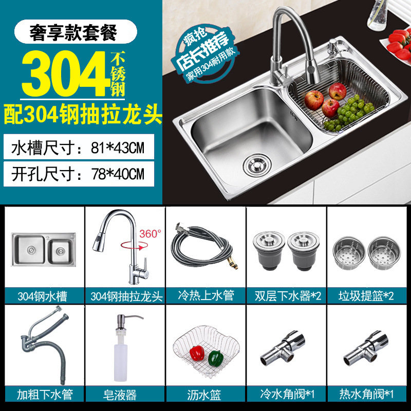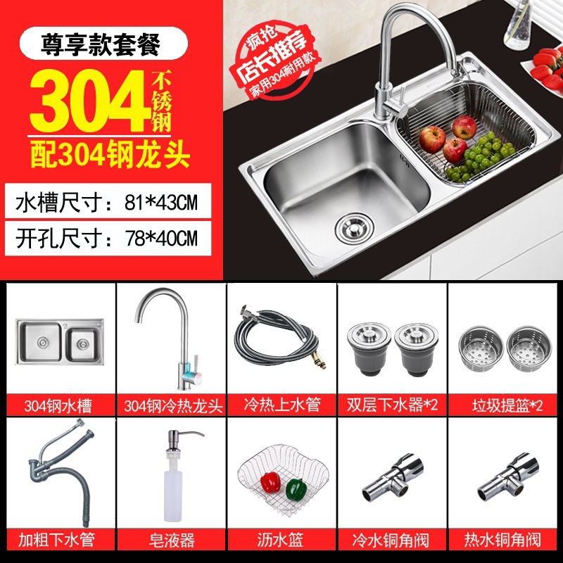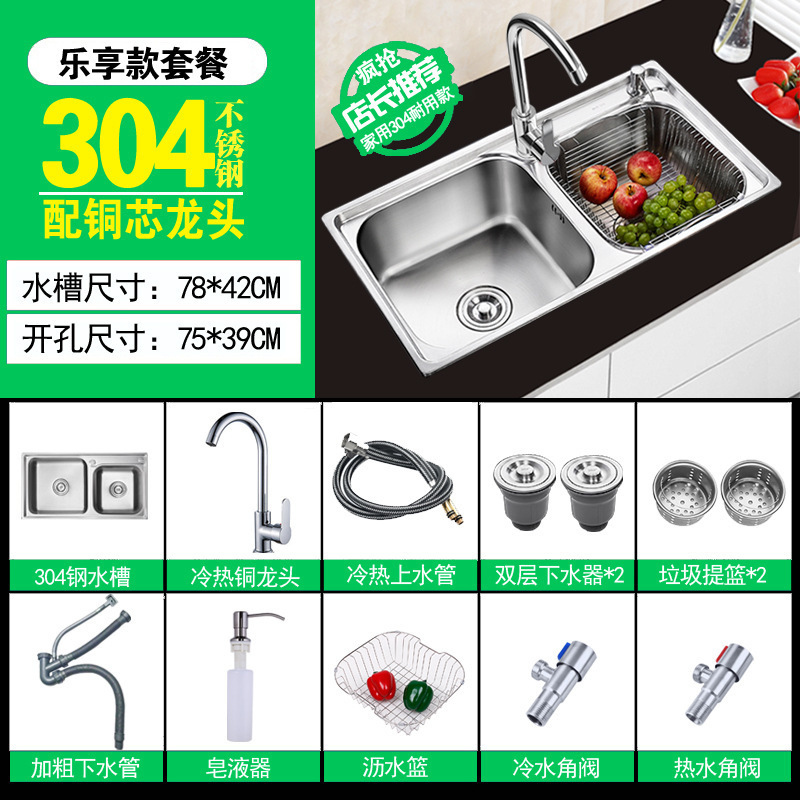 주방 물 통합 싱크대 스테인레스 스틸 야채 세척 분지 두 번 싱크대 두껍게 닦은 야채 세척 분지 두 배 싱크스토어 가기