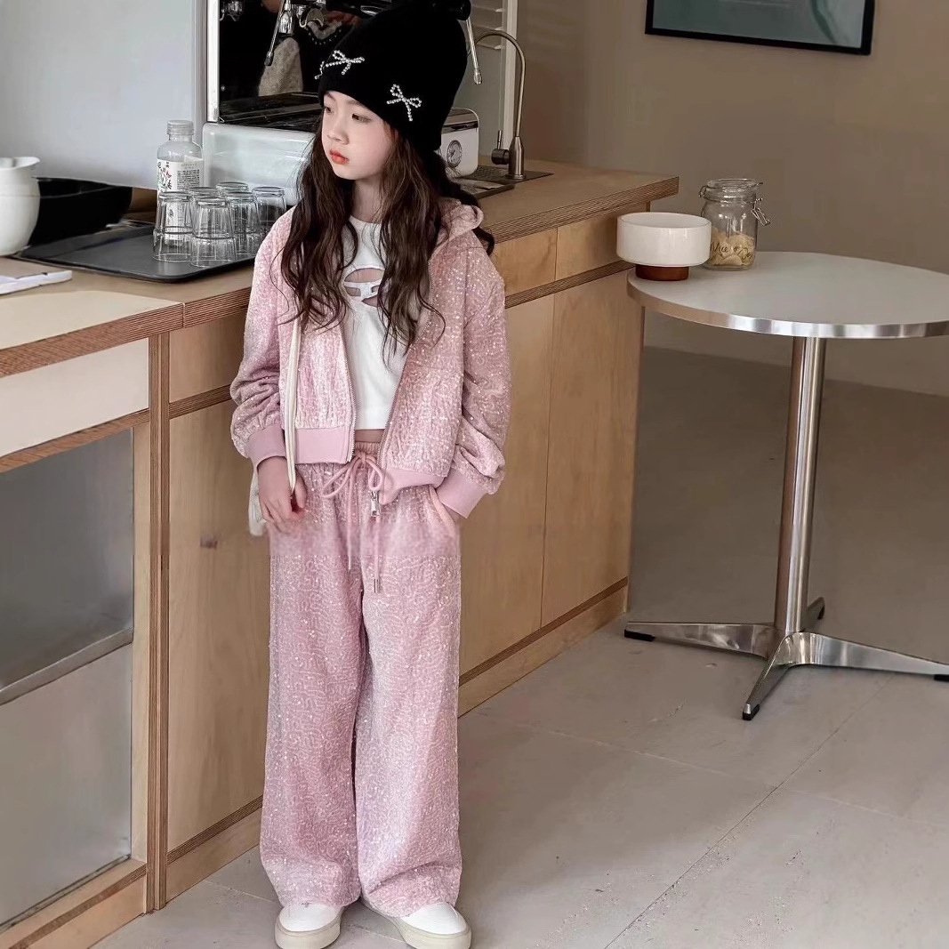소녀 봄웨어 세트 2025 봄 새로운 유행 스킴 스포츠 레저 아동복 서양식 투피스 세트스토어 가기
