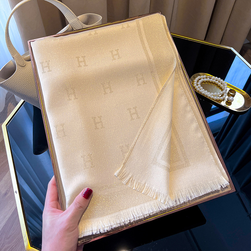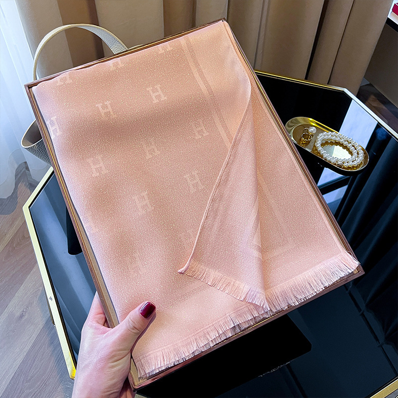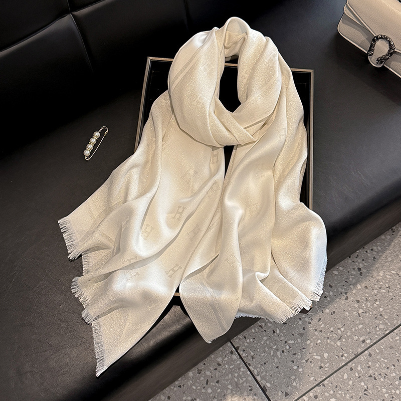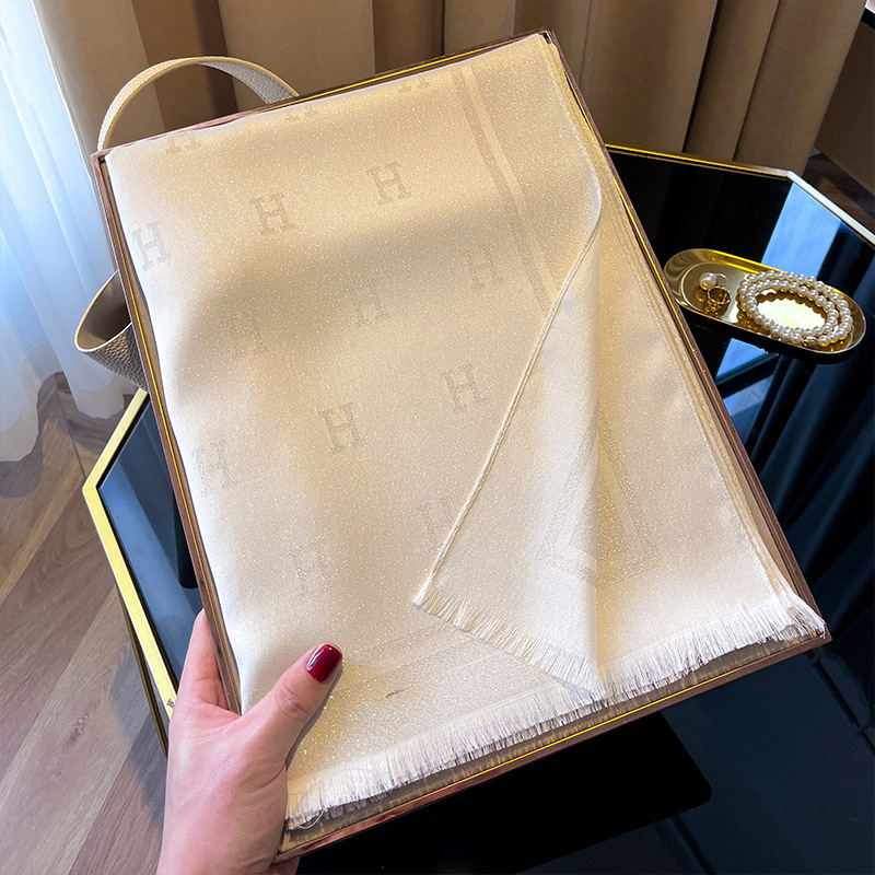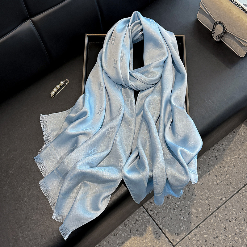 2025 새로운 H 편지 모조 실크 스카프 여성 간단한 패션 올매치 숄 텐셀 코튼 스카프 대외 무역