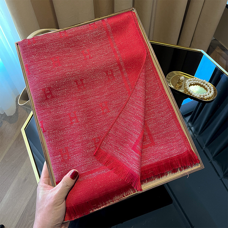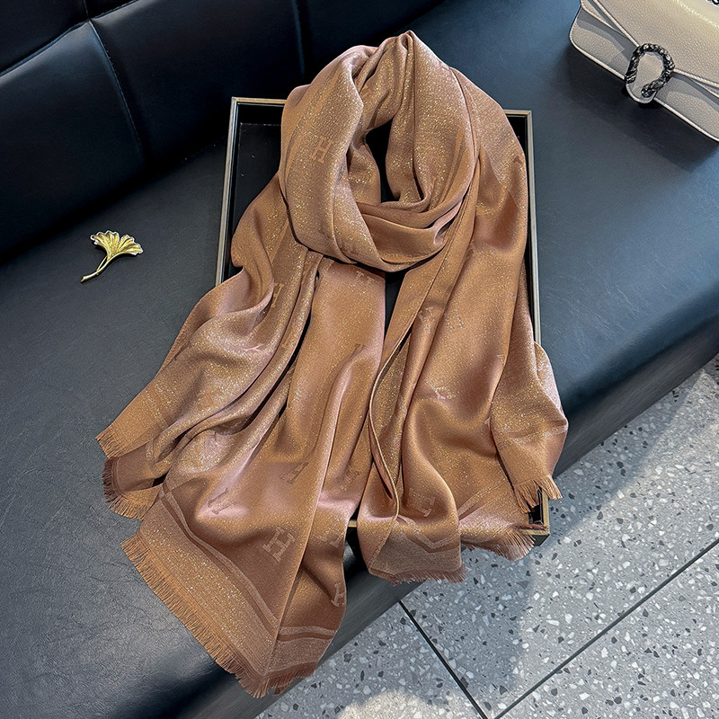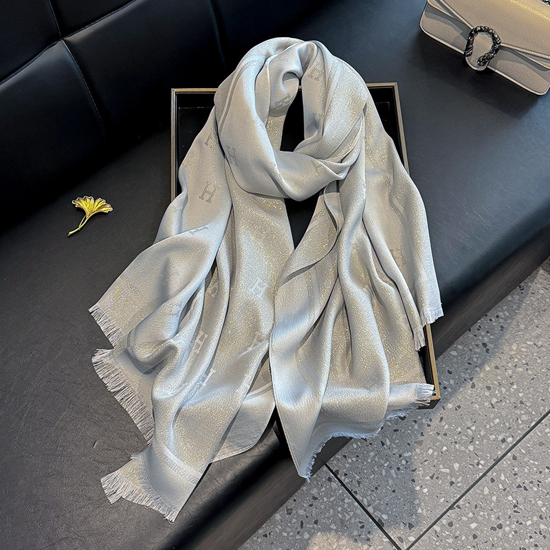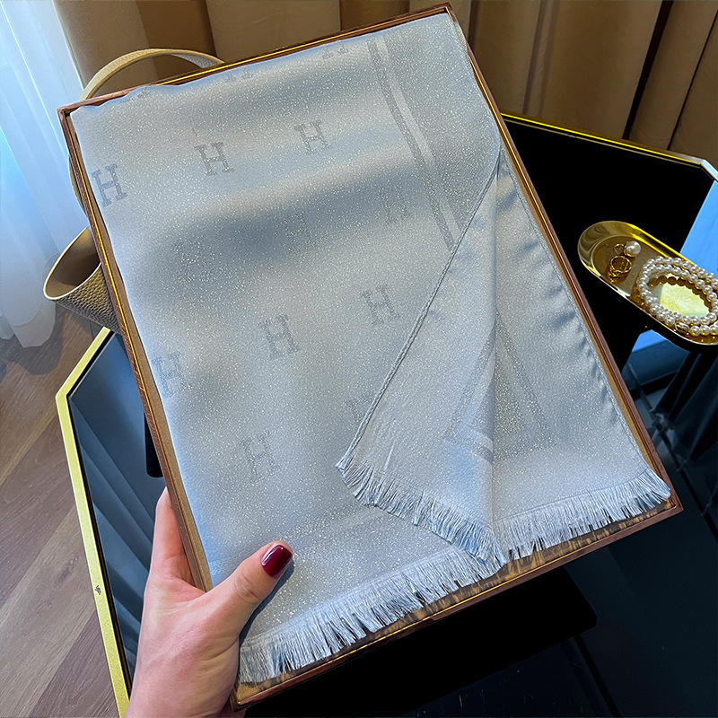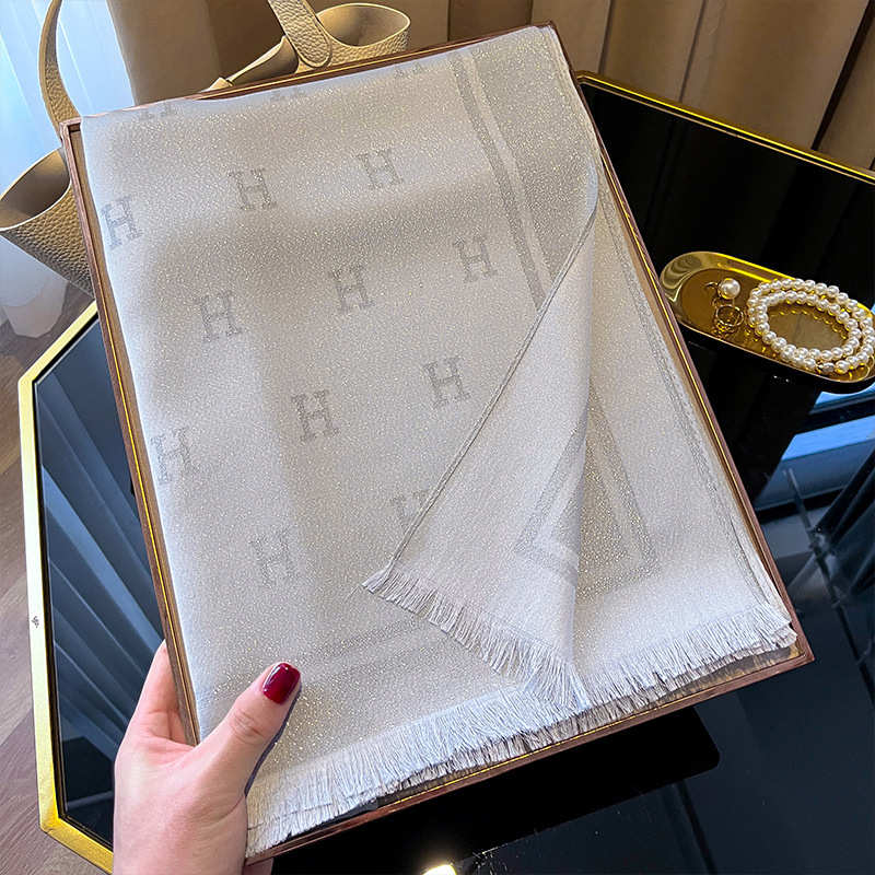 2025 새로운 H 편지 모조 실크 스카프 여성 간단한 패션 올매치 숄 텐셀 코튼 스카프 대외 무역