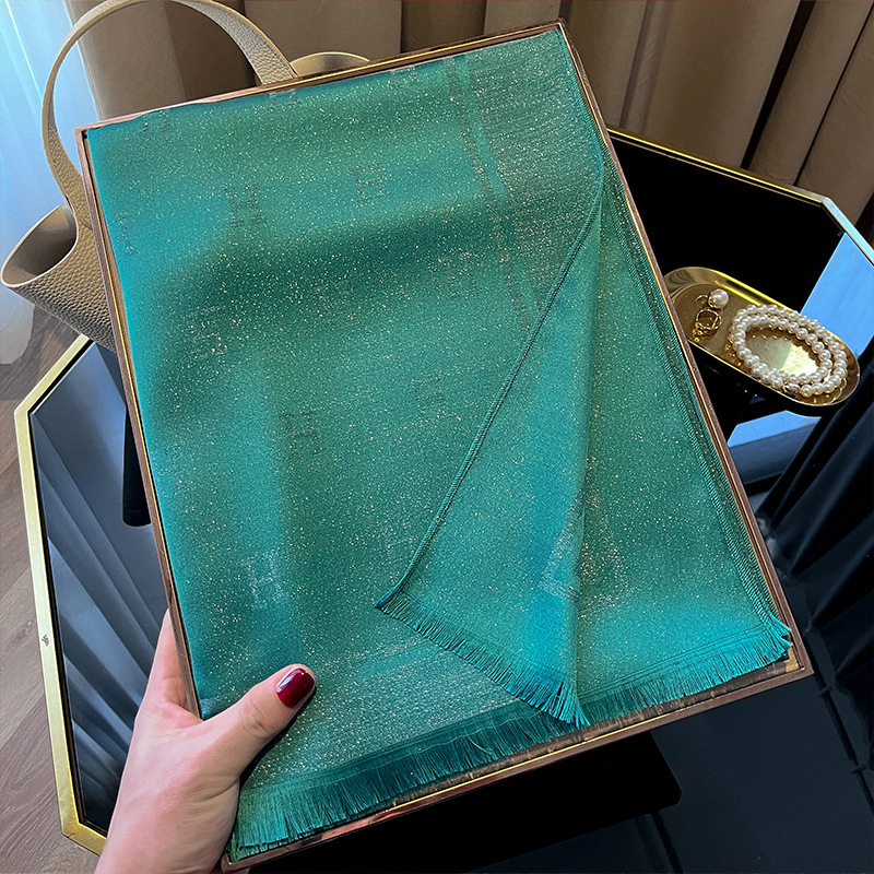 2025 새로운 H 편지 모조 실크 스카프 여성 간단한 패션 올매치 숄 텐셀 코튼 스카프 대외 무역스토어 가기