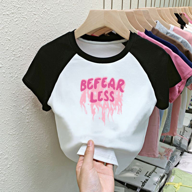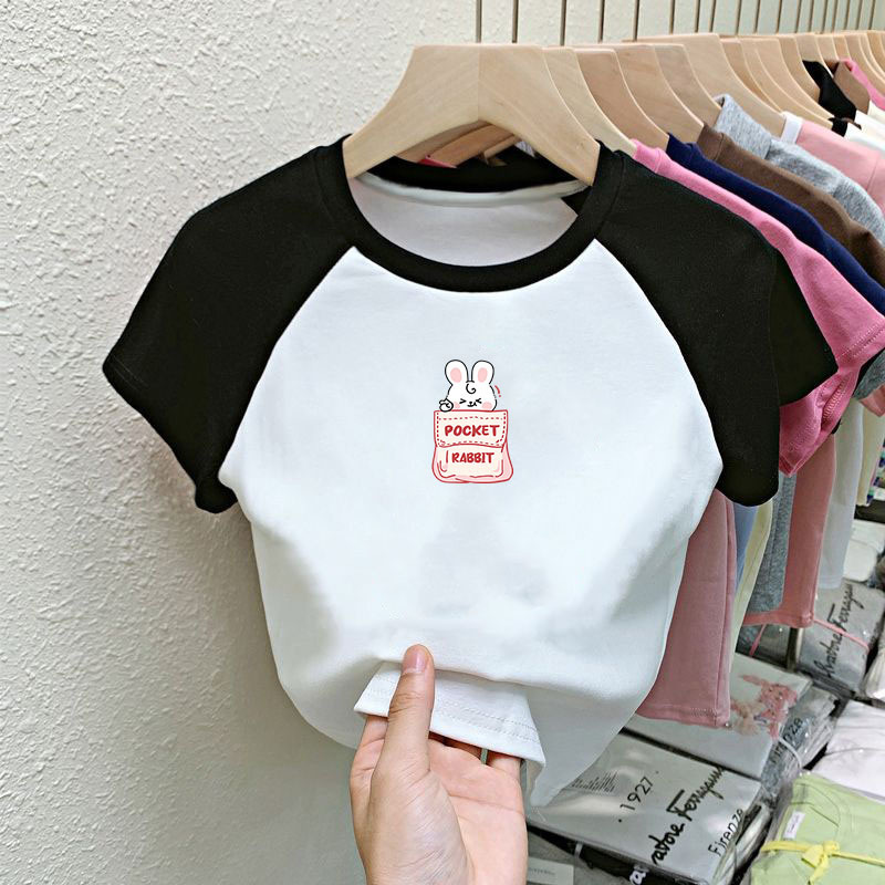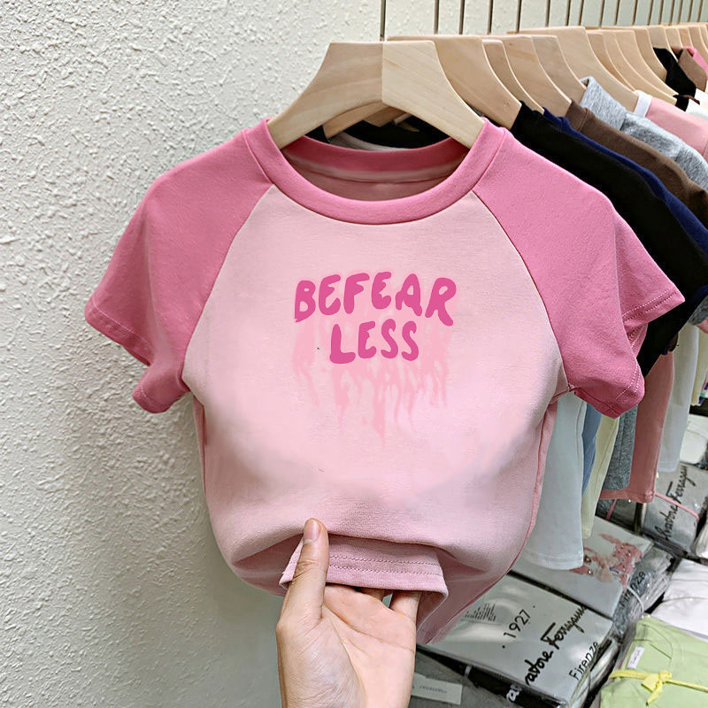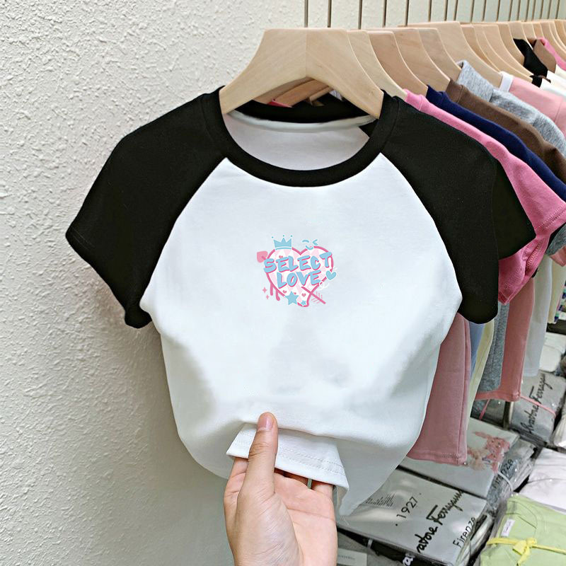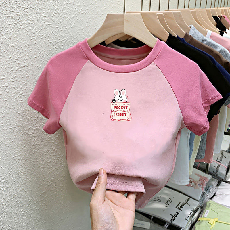 소녀 면 반소매 티셔츠 2024 여름 유행 어린이 인터넷-유명한 명암 반소매 탑 걸스 여름 티셔츠