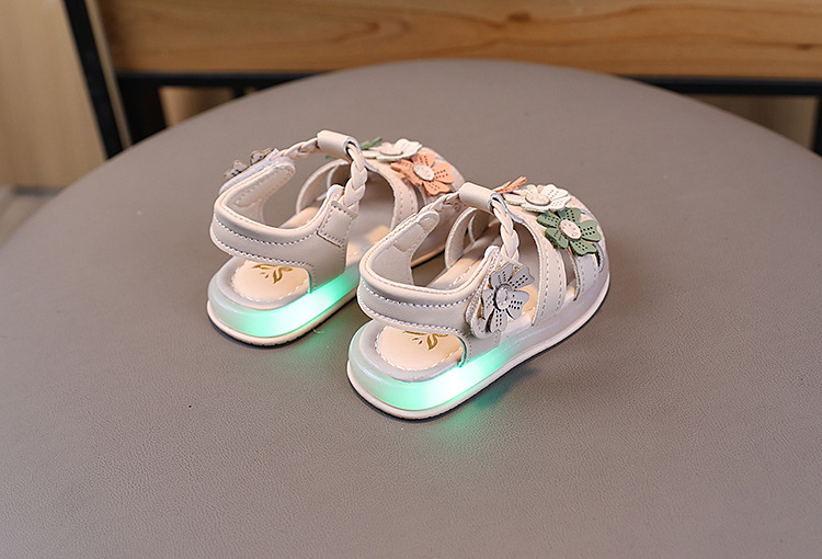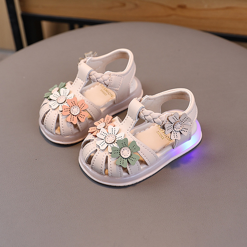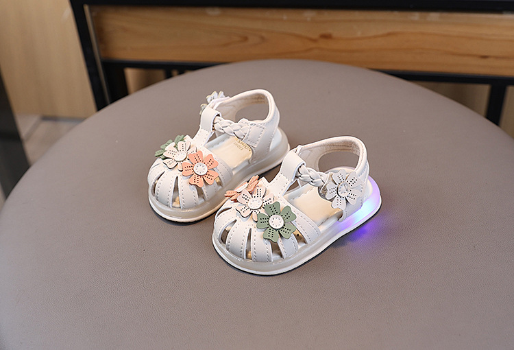 여름 새로운 밝은 조명 아기 소녀 유아 신발 1-2 세 어린이 공주 신발 커버 발가락 안티 킥 꽃 샌들
