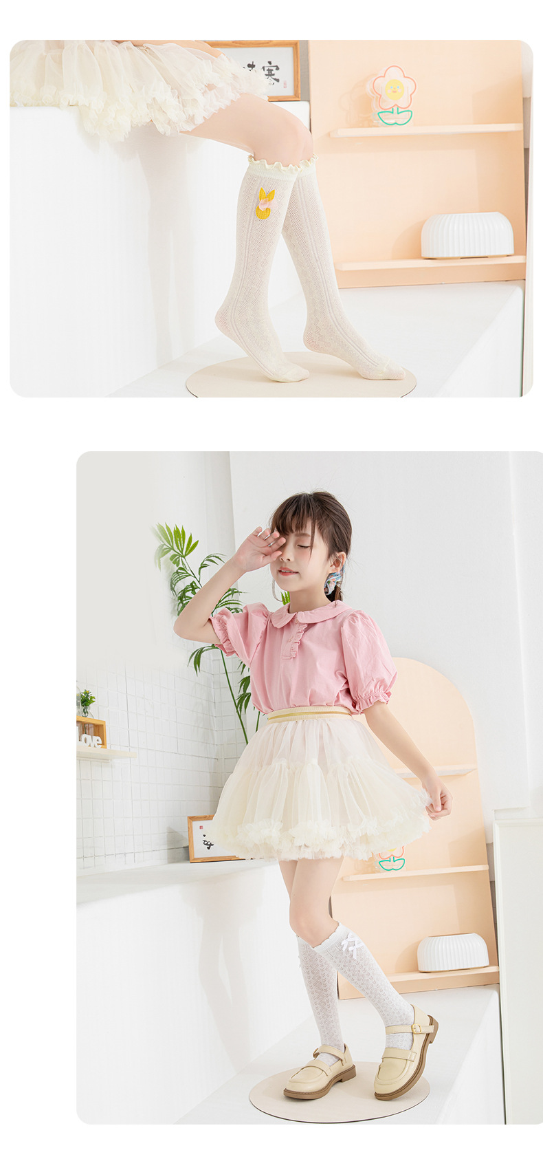 어린이 양말 여름 얇은 메쉬 소녀 만화 양말 중간 길이 스타킹 아기 레이스 모기 송아지 양말