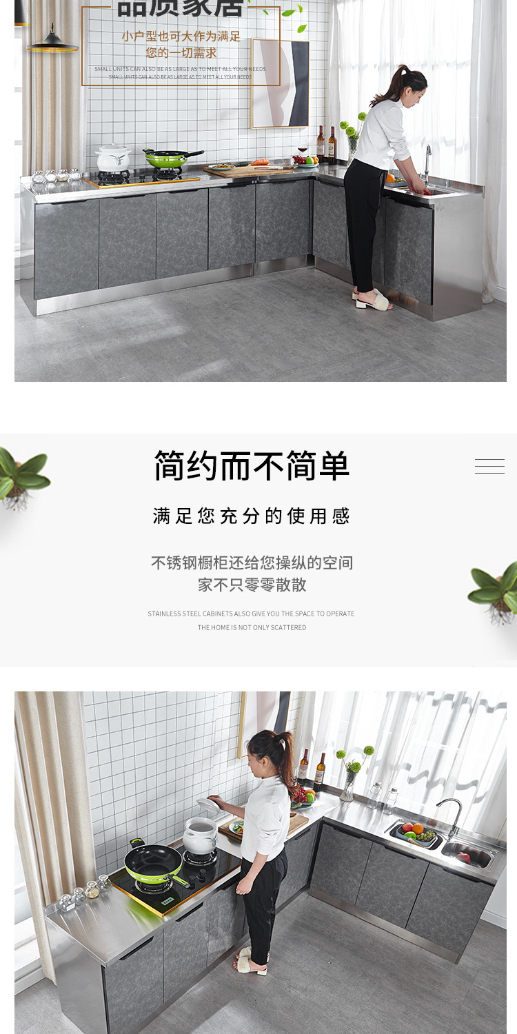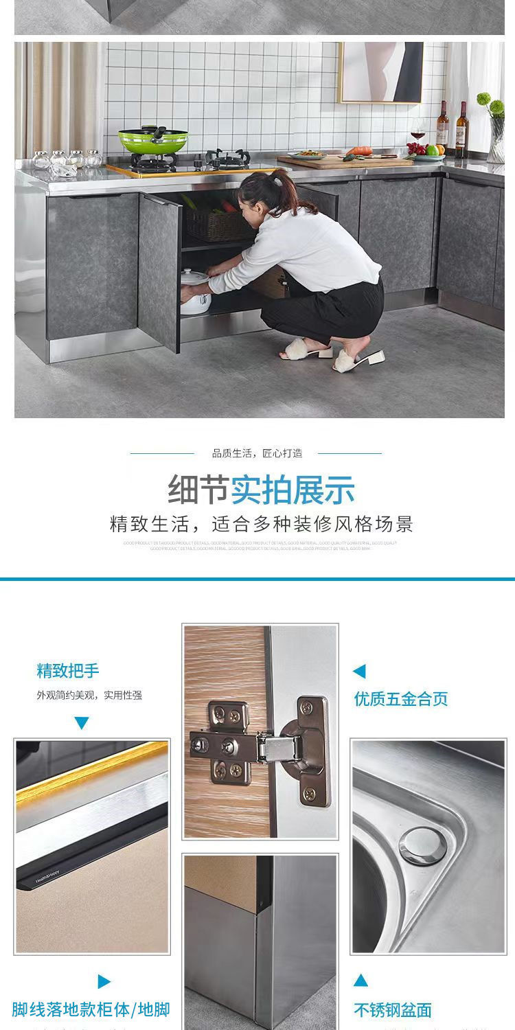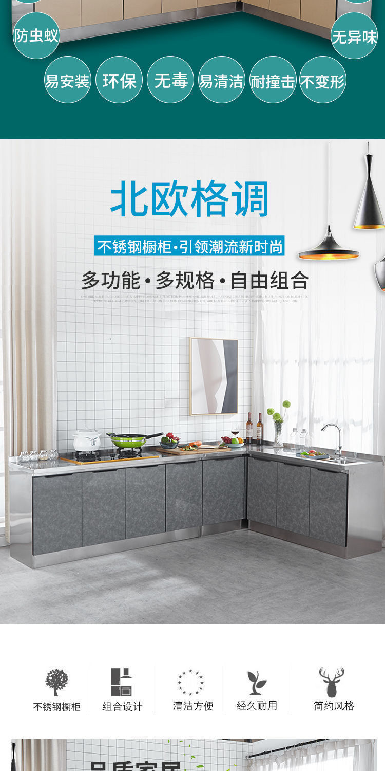 스테인레스 스틸 주방 캐비닛 조합 캐비닛 모든 스틸 통합 스토브 캐비닛 저장 찬장 조립 경제적 인 가정용 보관 캐비닛스토어 가기