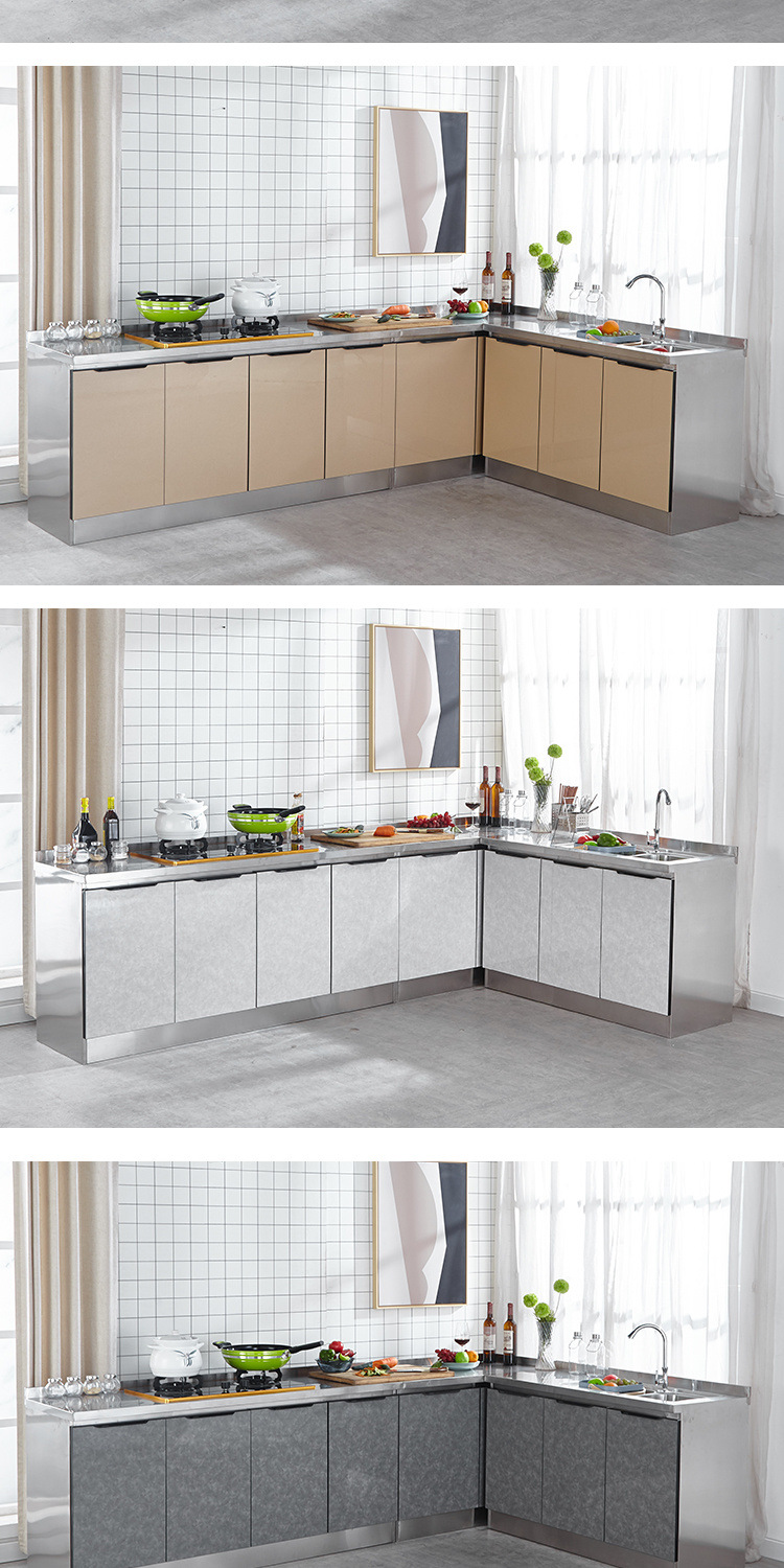 스테인레스 스틸 주방 캐비닛 조합 캐비닛 모든 스틸 통합 스토브 캐비닛 저장 찬장 조립 경제적 인 가정용 보관 캐비닛
