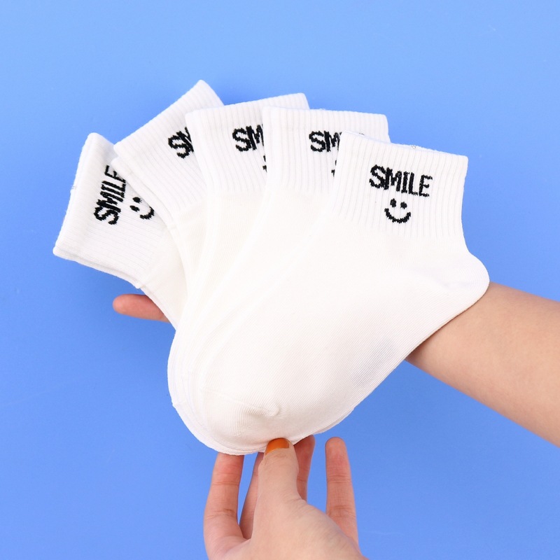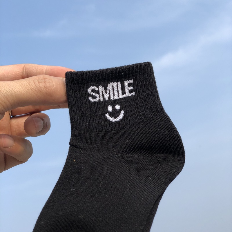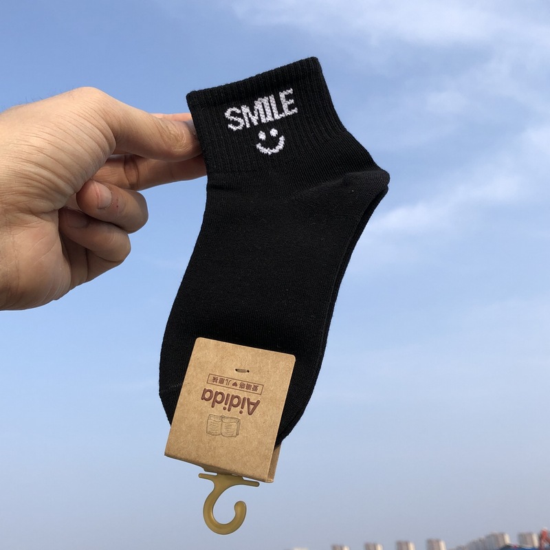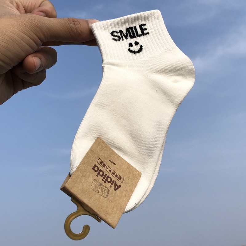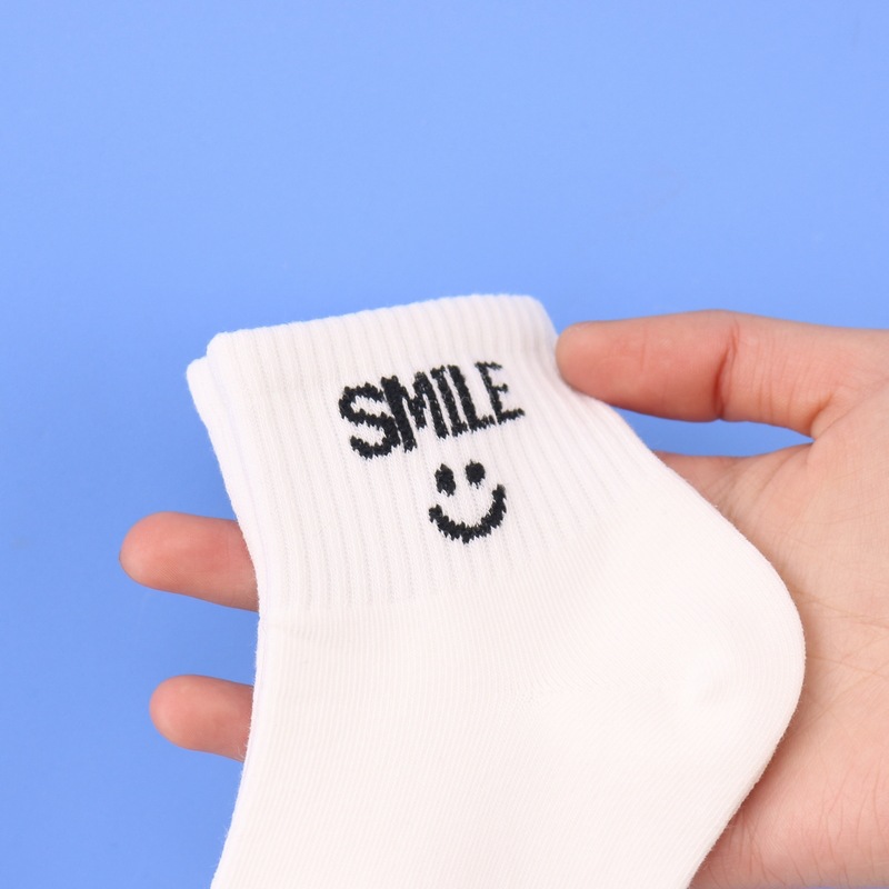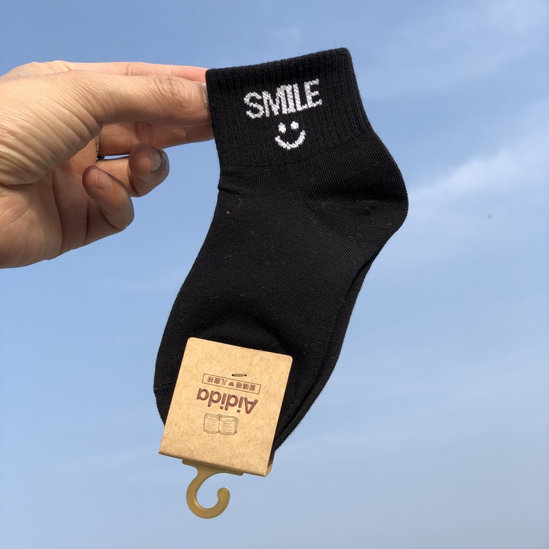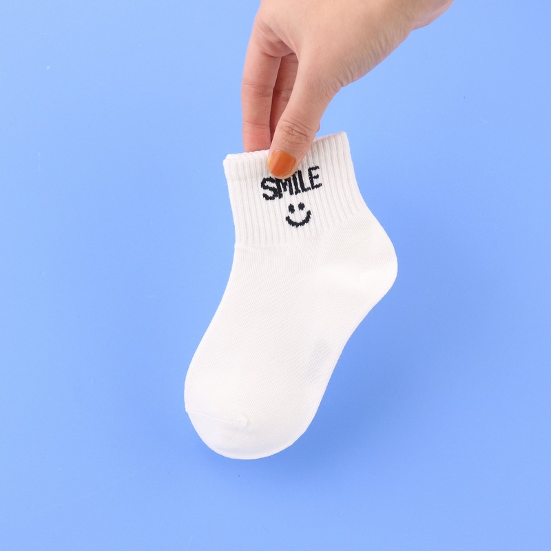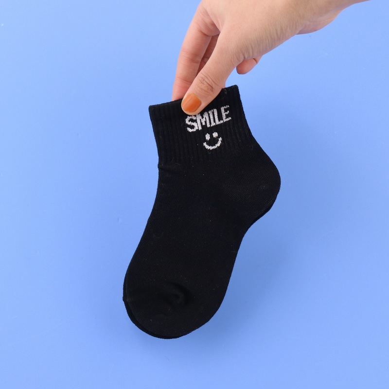 사랑 Dida 어린이 양말 봄과 여름 새로운 얇은 코튼 통기성 소년과 소녀 패션 스마일리 흑백 학생 스포츠 양말