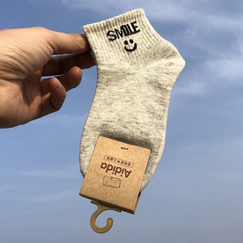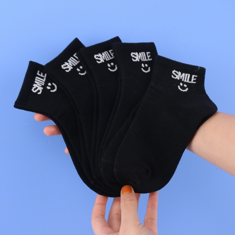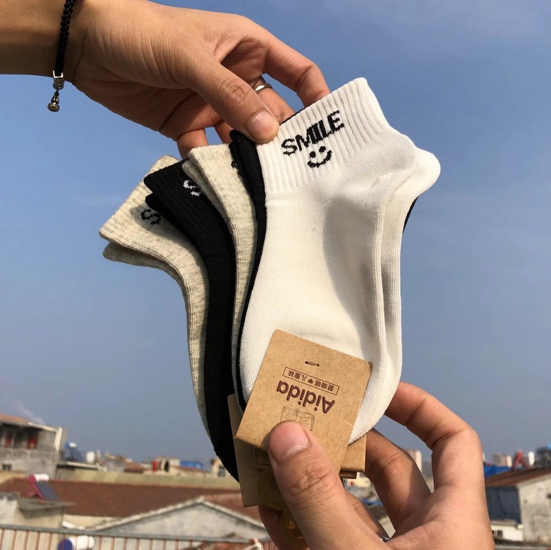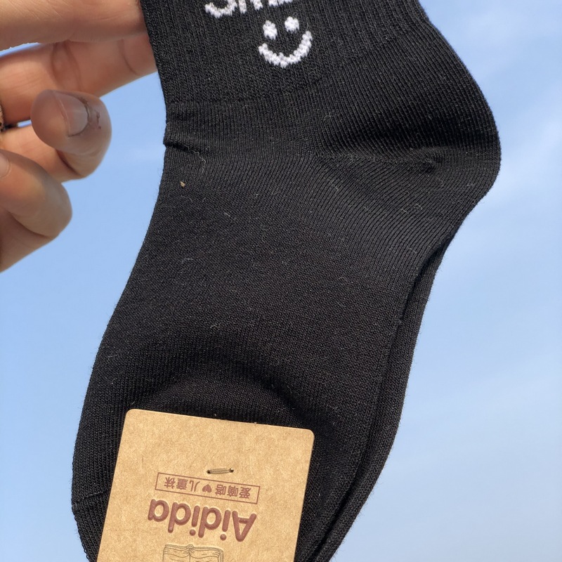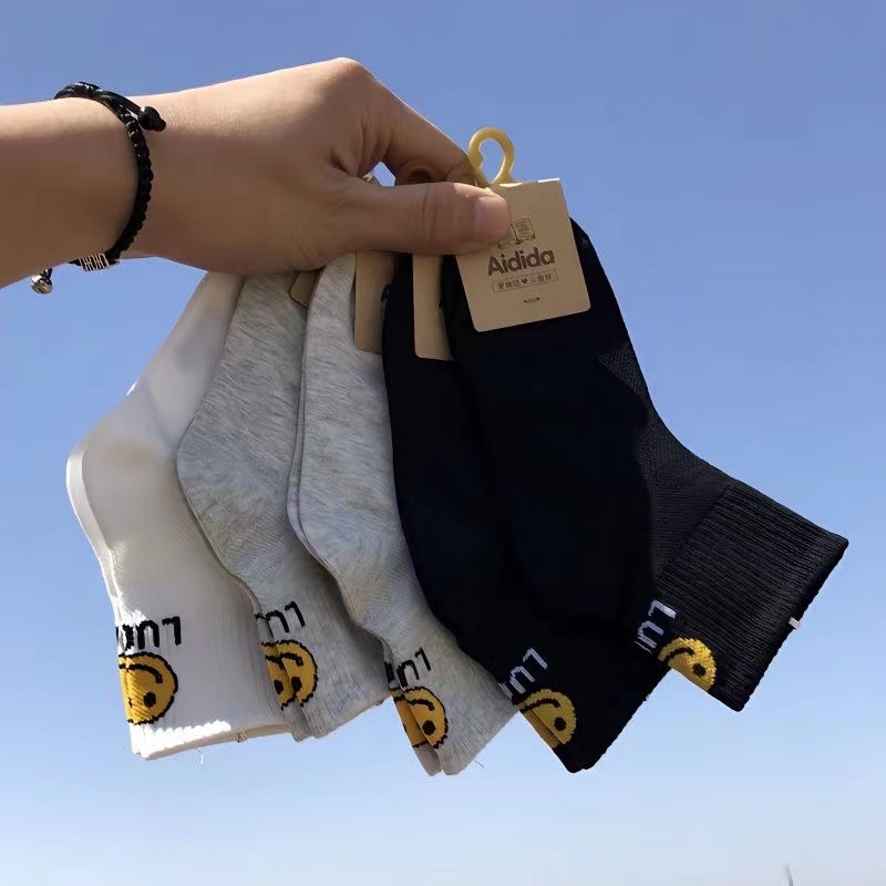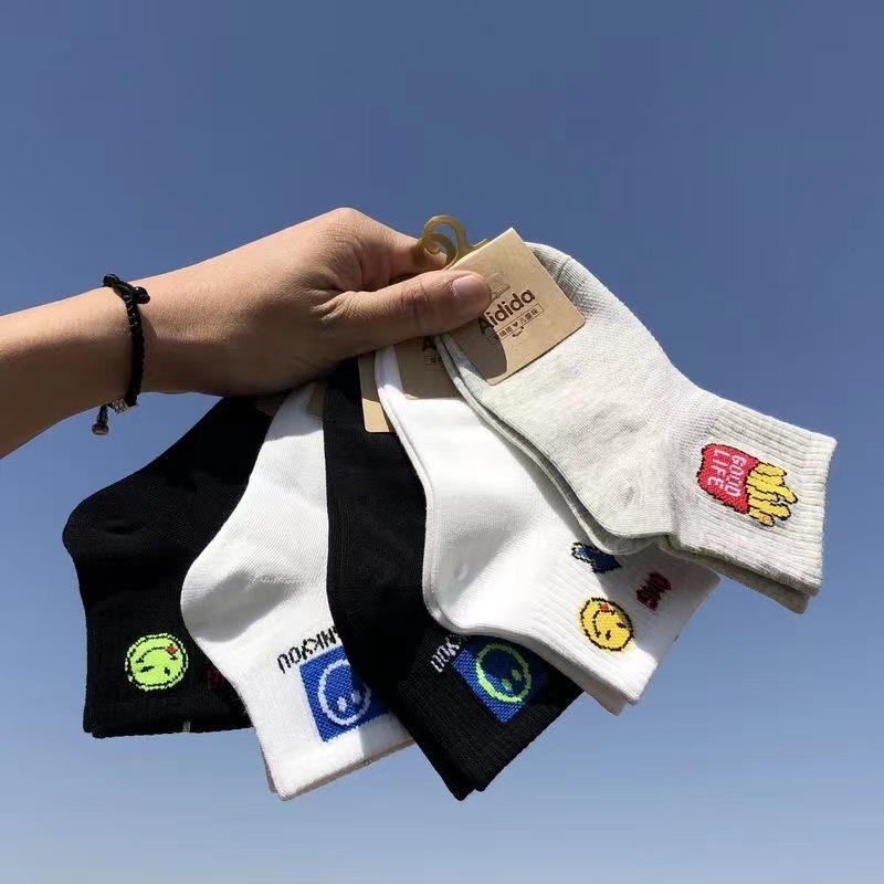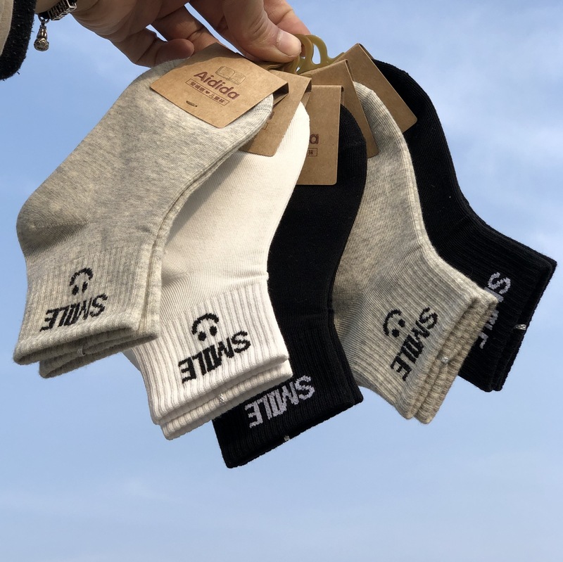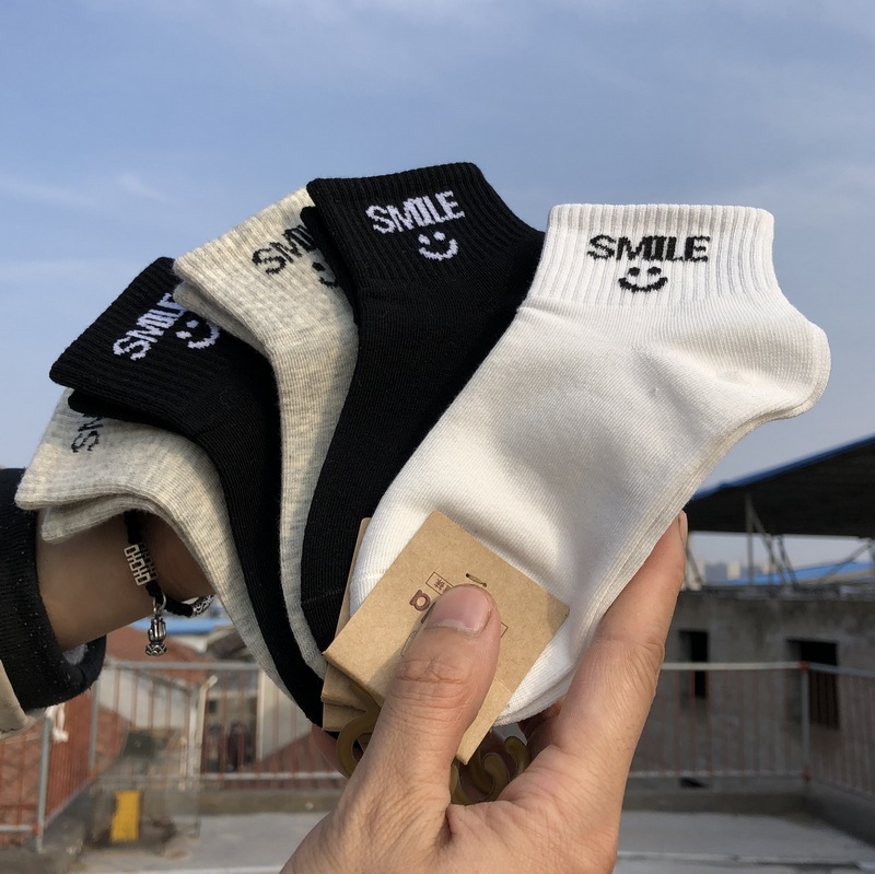 사랑 Dida 어린이 양말 봄과 여름 새로운 얇은 코튼 통기성 소년과 소녀 패션 스마일리 흑백 학생 스포츠 양말