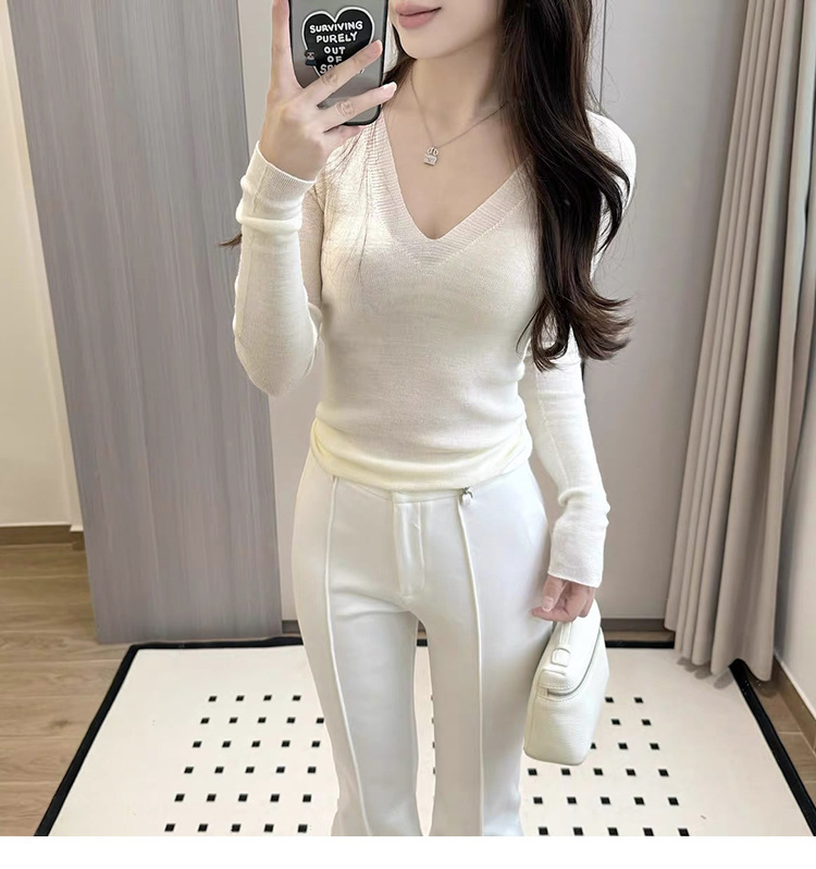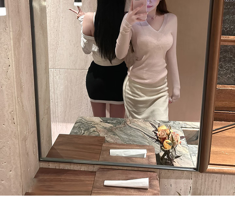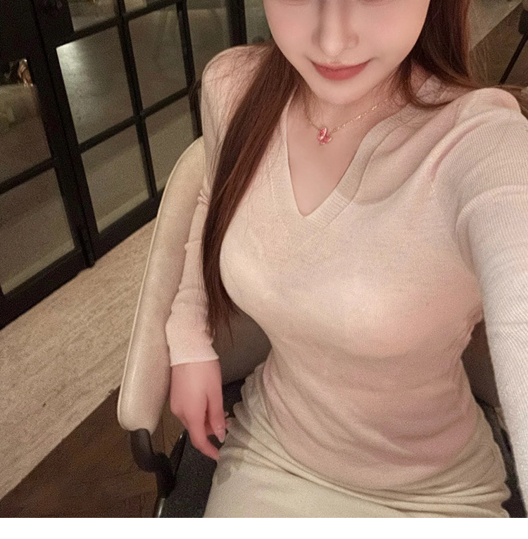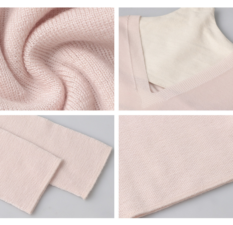 주인장 추천/ 100% 순모 고급 울 스웨터 브이넥 니트 여성용 핑크색 상의스토어 가기