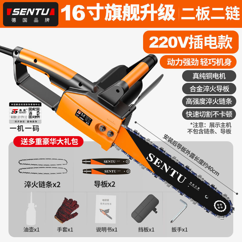 • 독일 SENTU 정품 플러그인 전기 체인톱 - 16inch 플래그십 업그레이드 버전 가이드 플레이트 2개 + 체인 2개