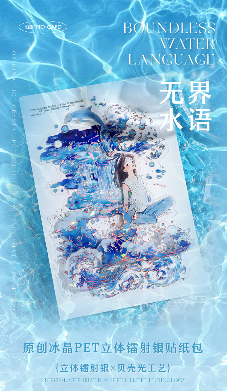 모 잉크 얼음 크리스탈 PET 스티커 가방 무제한 물 언어 시리즈 방수 소재 손 계정 구 메이 DIY 조경 구 카드 스티커
