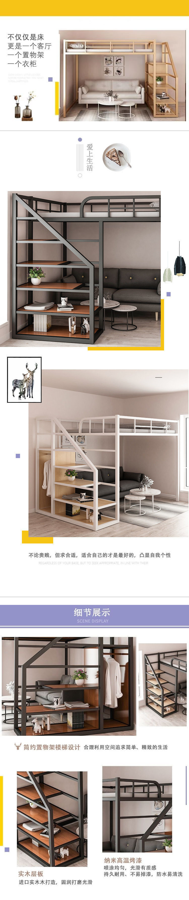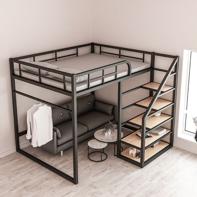 TP1 아파트 작은 아파트 이중 2 층 침대 다기능 철 침대 높고 낮은 침대 조립 침대 공간 절약 높은스토어 가기