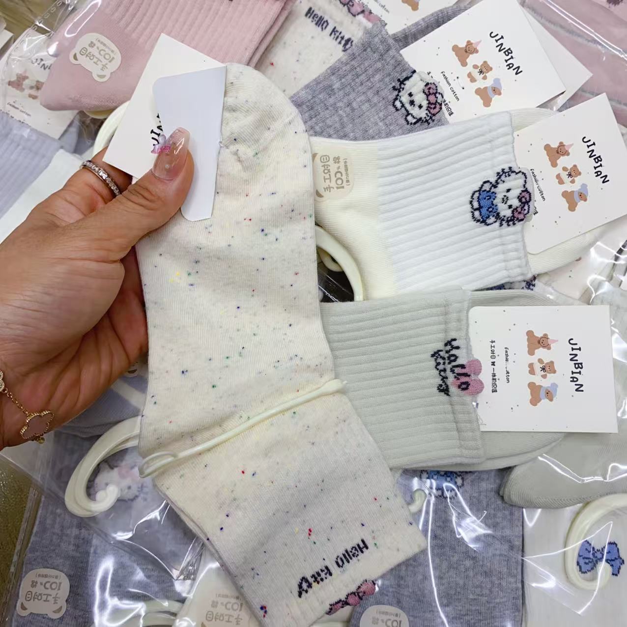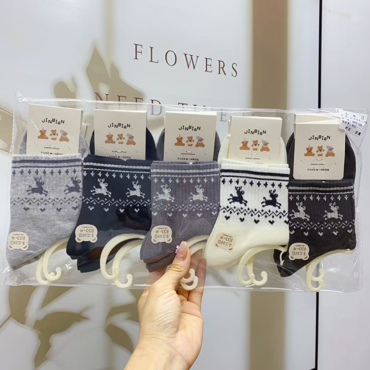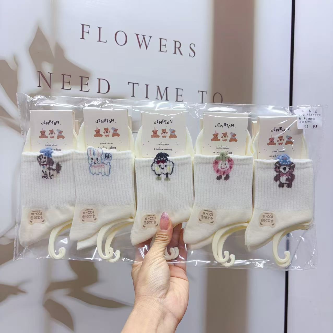 진비안 가을 겨울 남녀 양말 스포츠 양말 중목 양말 트렌디하고 귀여운 스포츠 여성 양말 만화 중간 허리 면 양말스토어 가기