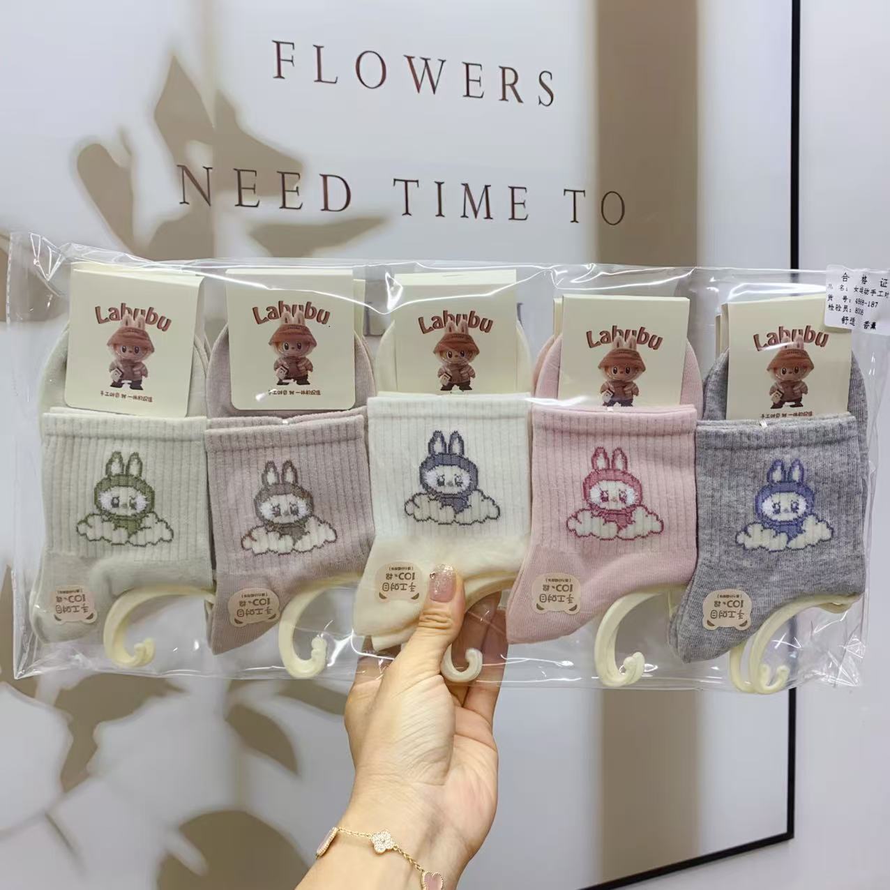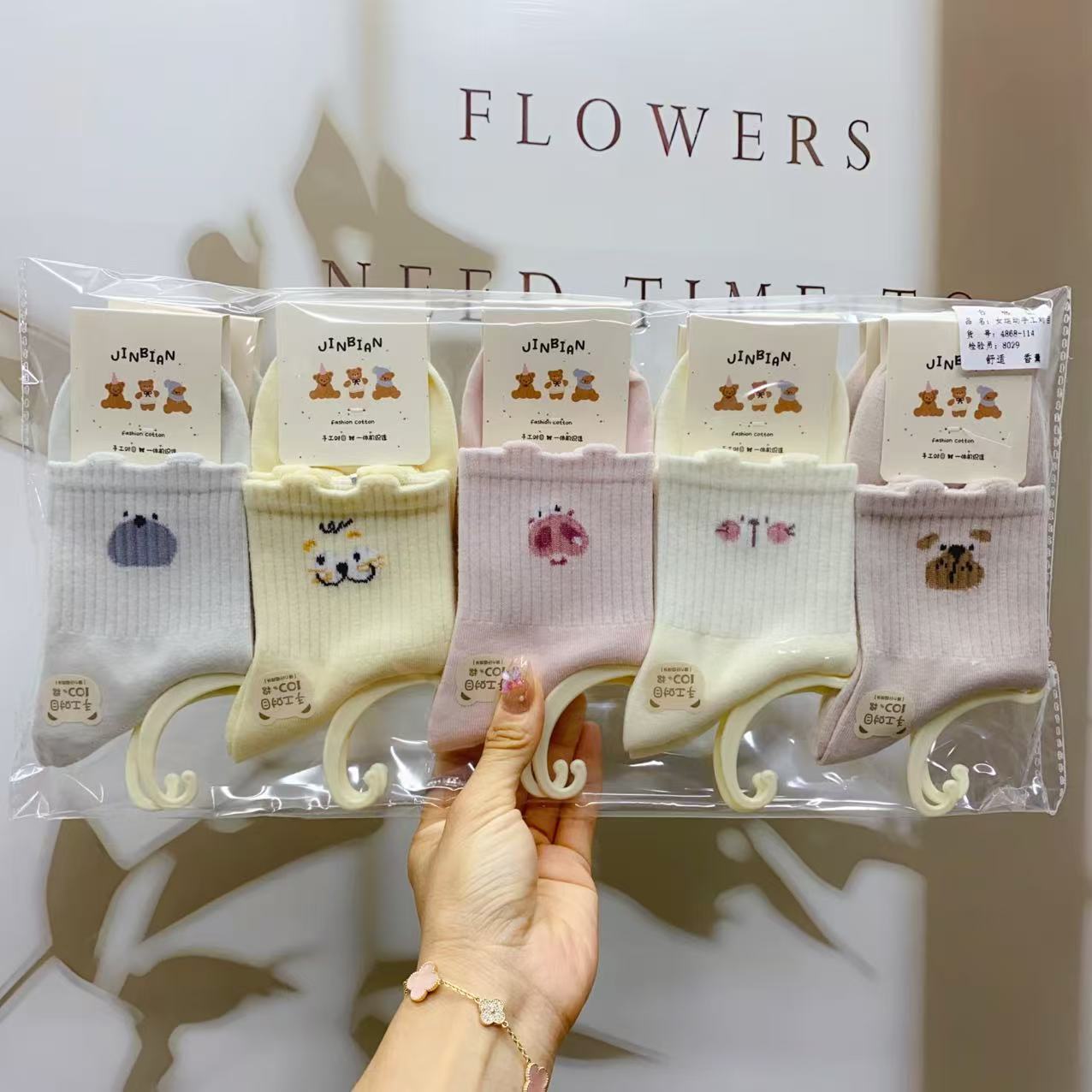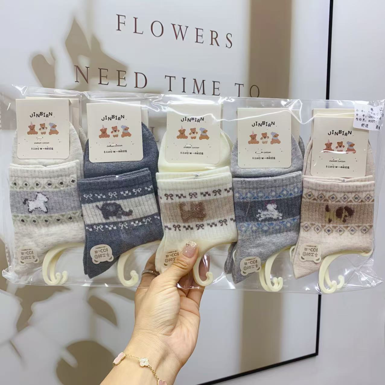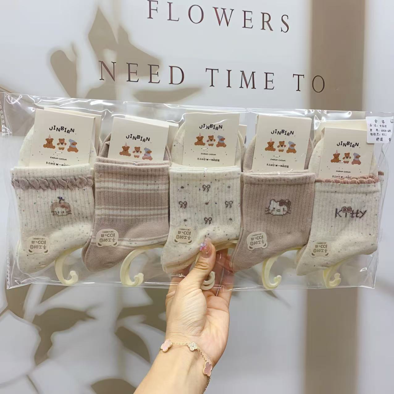 진비안 가을 겨울 남녀 양말 스포츠 양말 중목 양말 트렌디하고 귀여운 스포츠 여성 양말 만화 중간 허리 면 양말스토어 가기