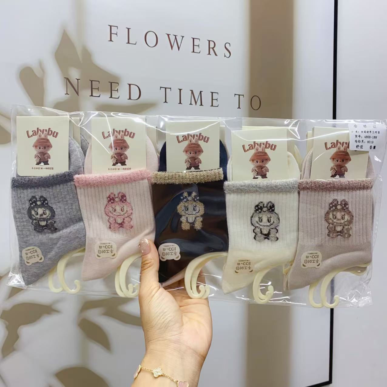 진비안 가을 겨울 남녀 양말 스포츠 양말 중목 양말 트렌디하고 귀여운 스포츠 여성 양말 만화 중간 허리 면 양말