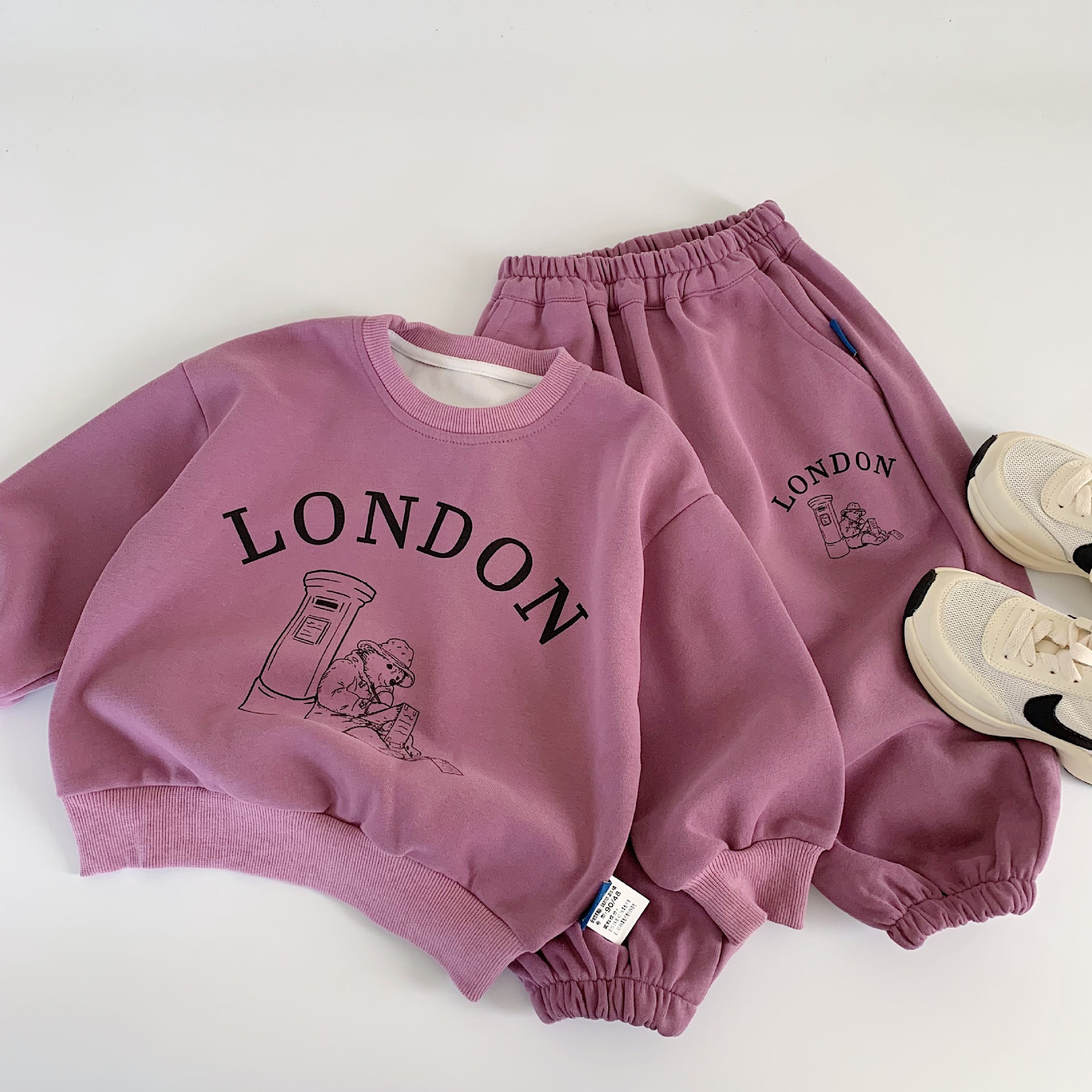 마이바오 가을 아동복 세트 2026 남아 여아용 만화 패딩턴 베어 스포츠 투피스 세트, 트렌디한 아동복스토어 가기