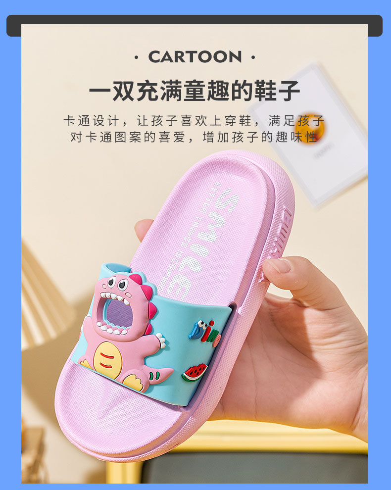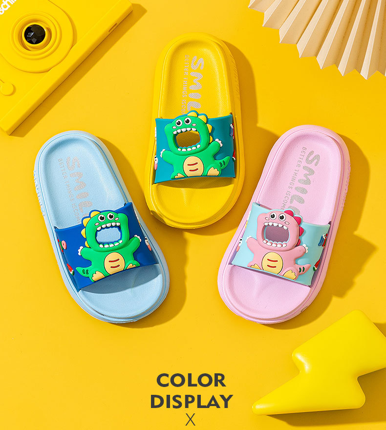 어린이 슬리퍼 소년과 소녀 미끄럼 방지 여름 새로운 실내 홈 목욕 귀여운 공룡 어린이 경량 샌들