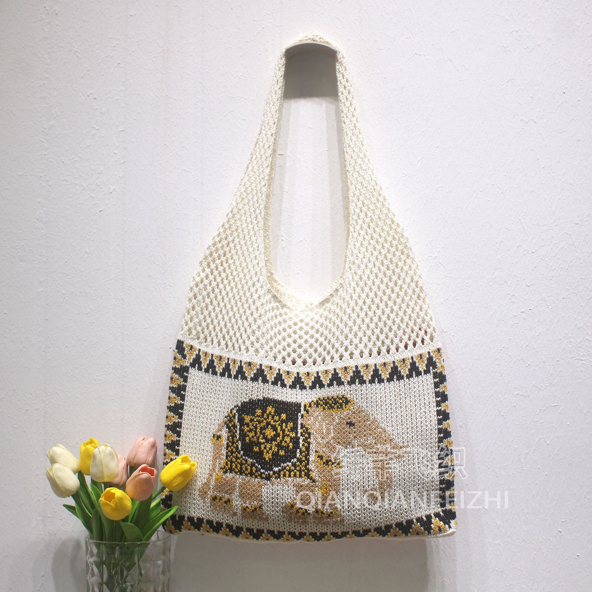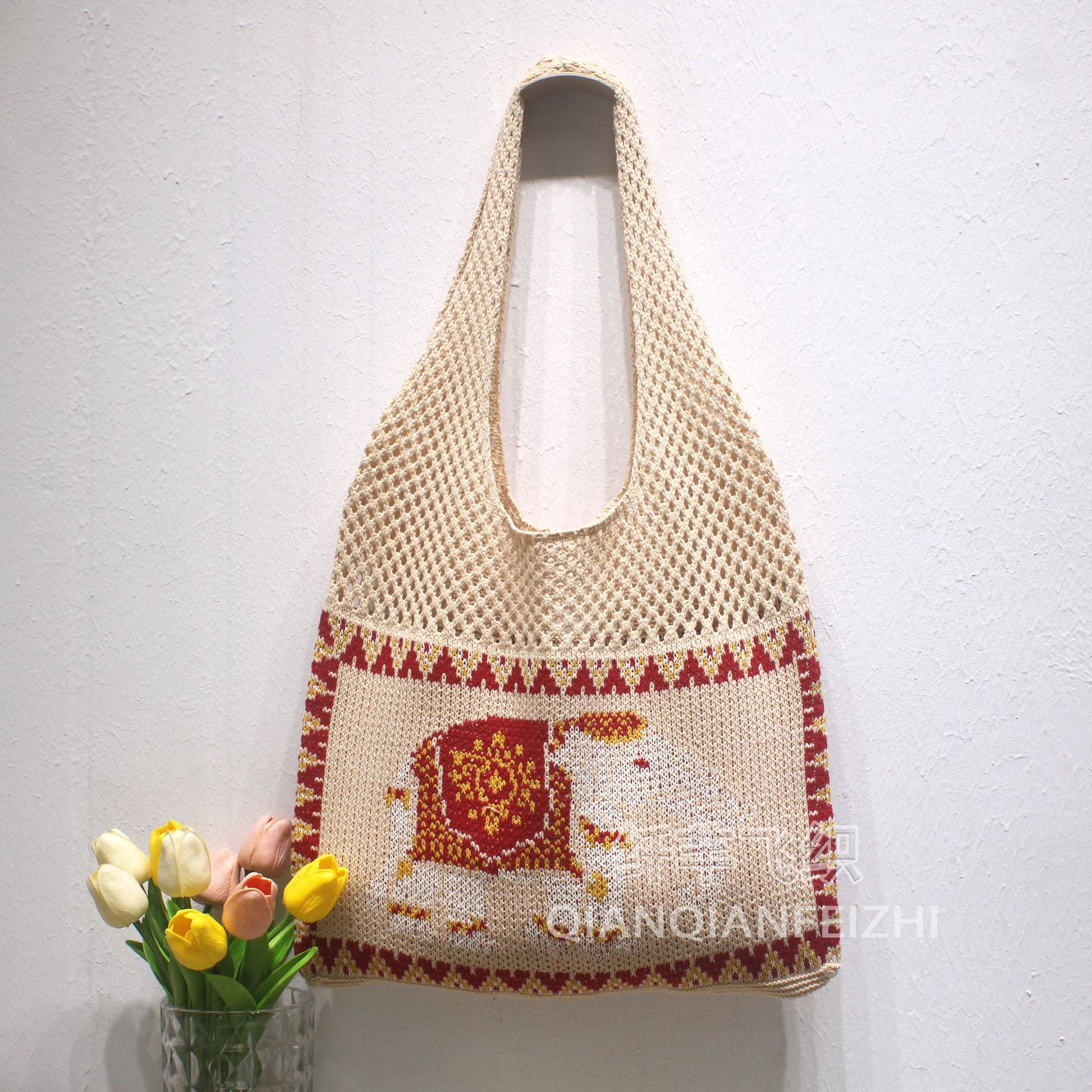 태국 국경 간 게으른 스타일 코튼 짠 가방 새로운 할로우 토트 숄더 백 홀리데이 비치 백 올 매치 여성용 가방