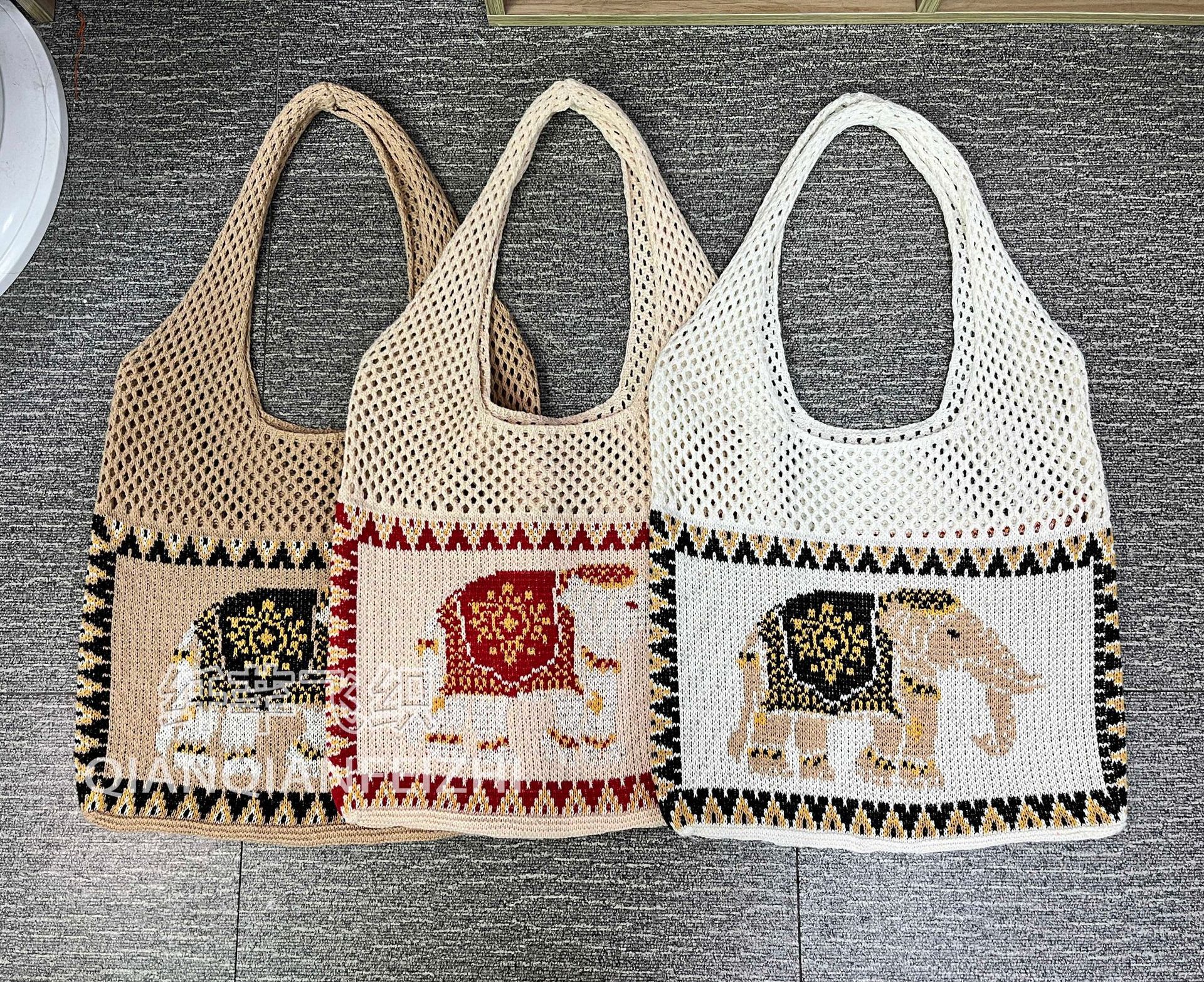 태국 국경 간 게으른 스타일 코튼 짠 가방 새로운 할로우 토트 숄더 백 홀리데이 비치 백 올 매치 여성용 가방스토어 가기