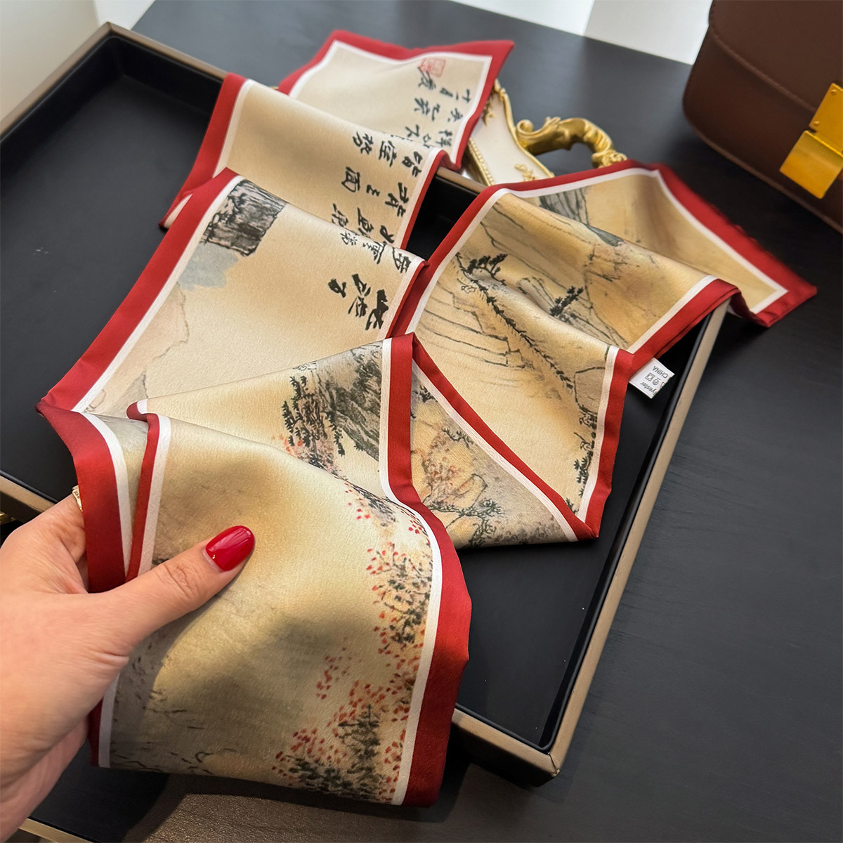 더블 레이어 새로운 실크 스카프 여성의 봄과 여름 패션 새틴 우아한 긴 작은 스카프 올 매치 스카프 리본