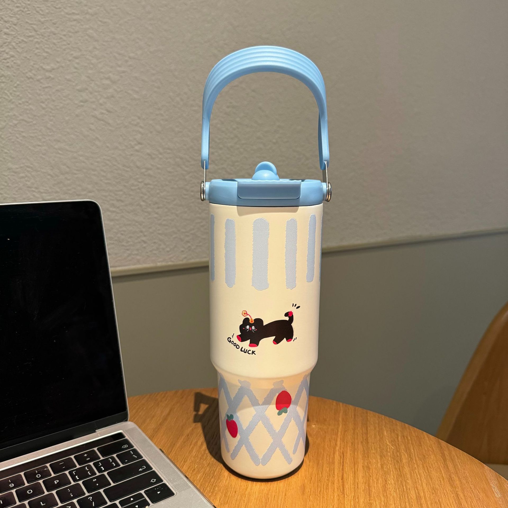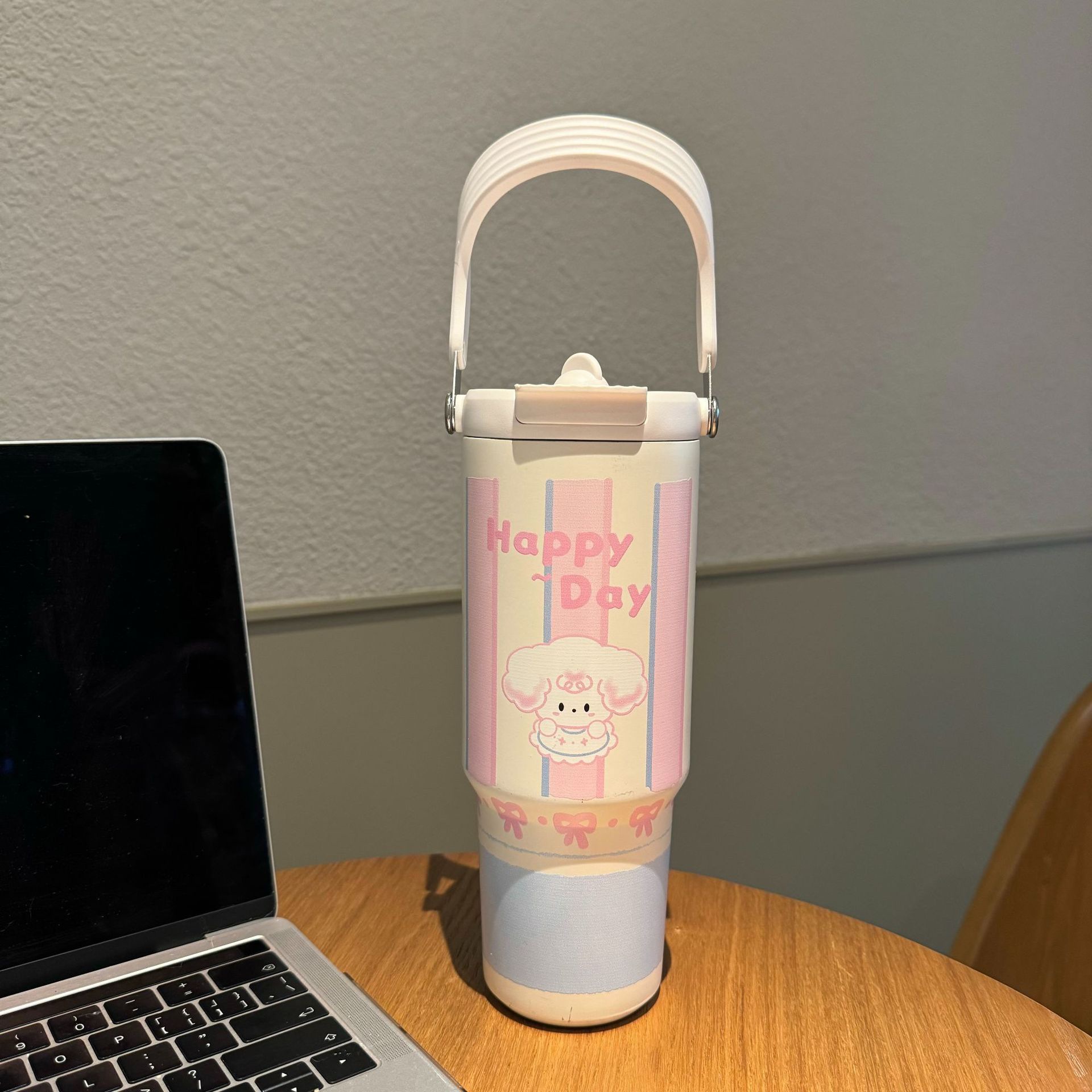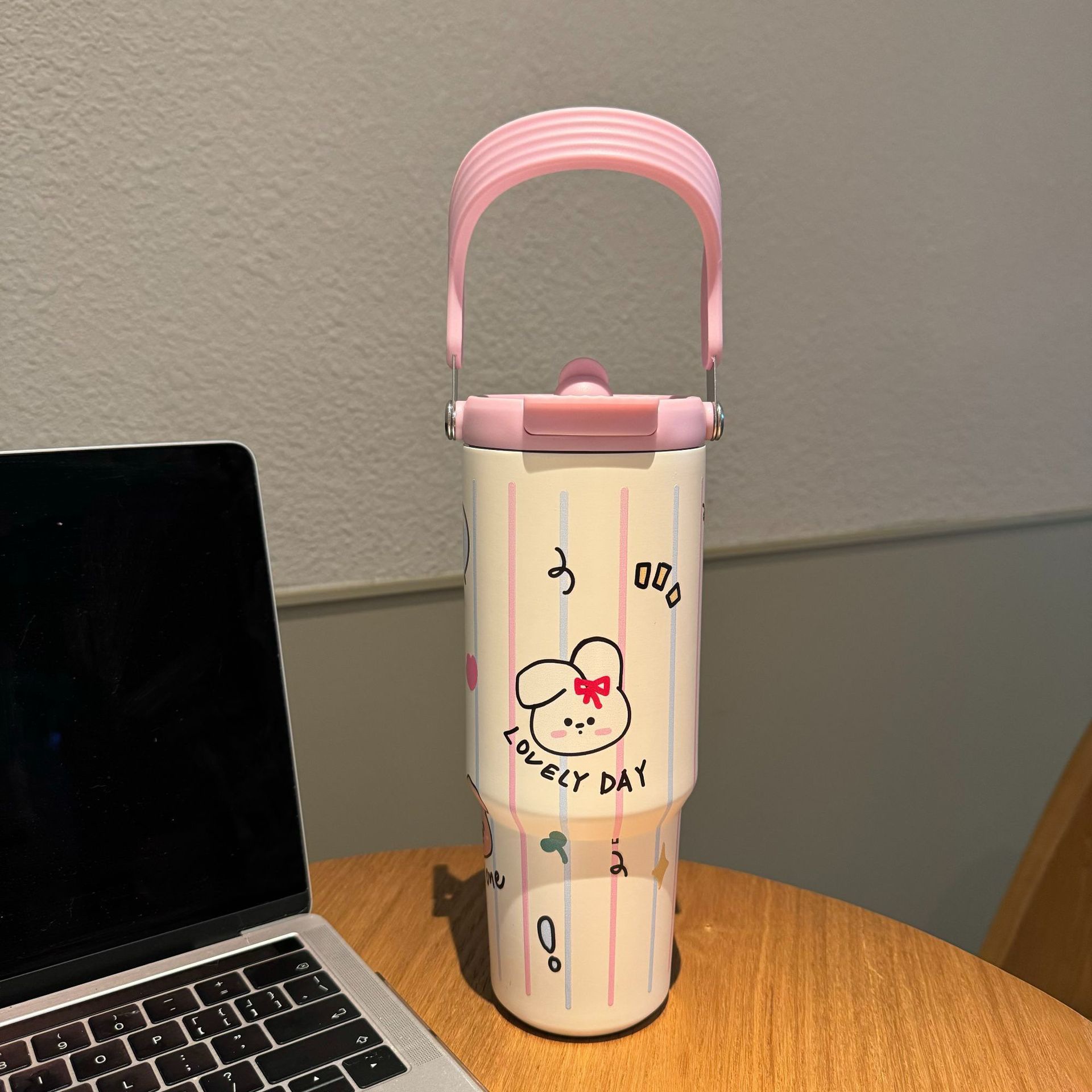 빅 맥 워터 컵 보온병 아이스 컵 대용량 2024 새로운 높은 색상 값 스테인레스 스틸 밀짚 여자 컵스토어 가기