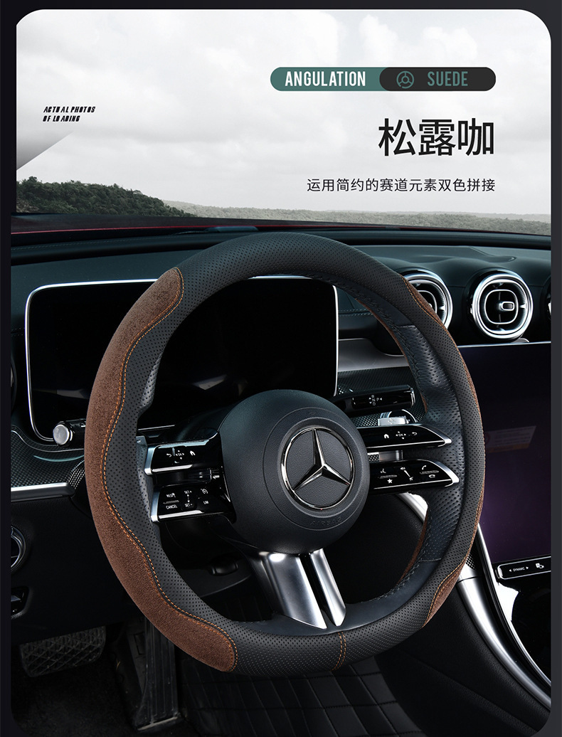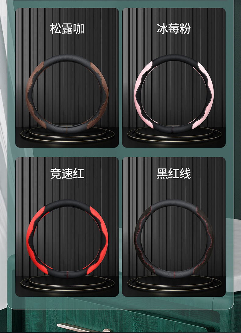 신형 자동차 핸들 커버 사계절용 미끄럼 방지 통기성 땀 흡수 스웨이드 가죽 핸들 커버 해외 배송 보호 커버스토어 가기