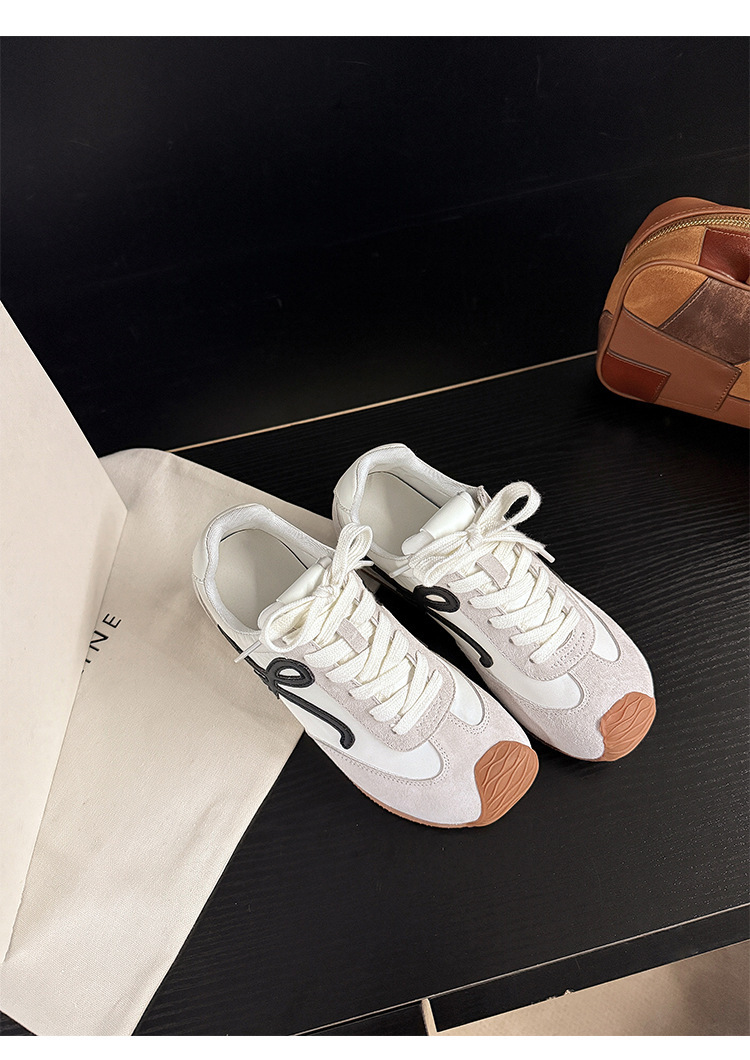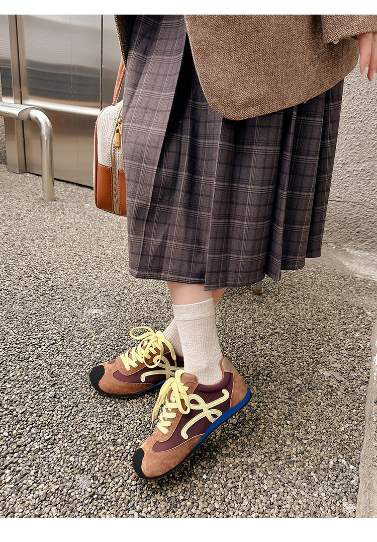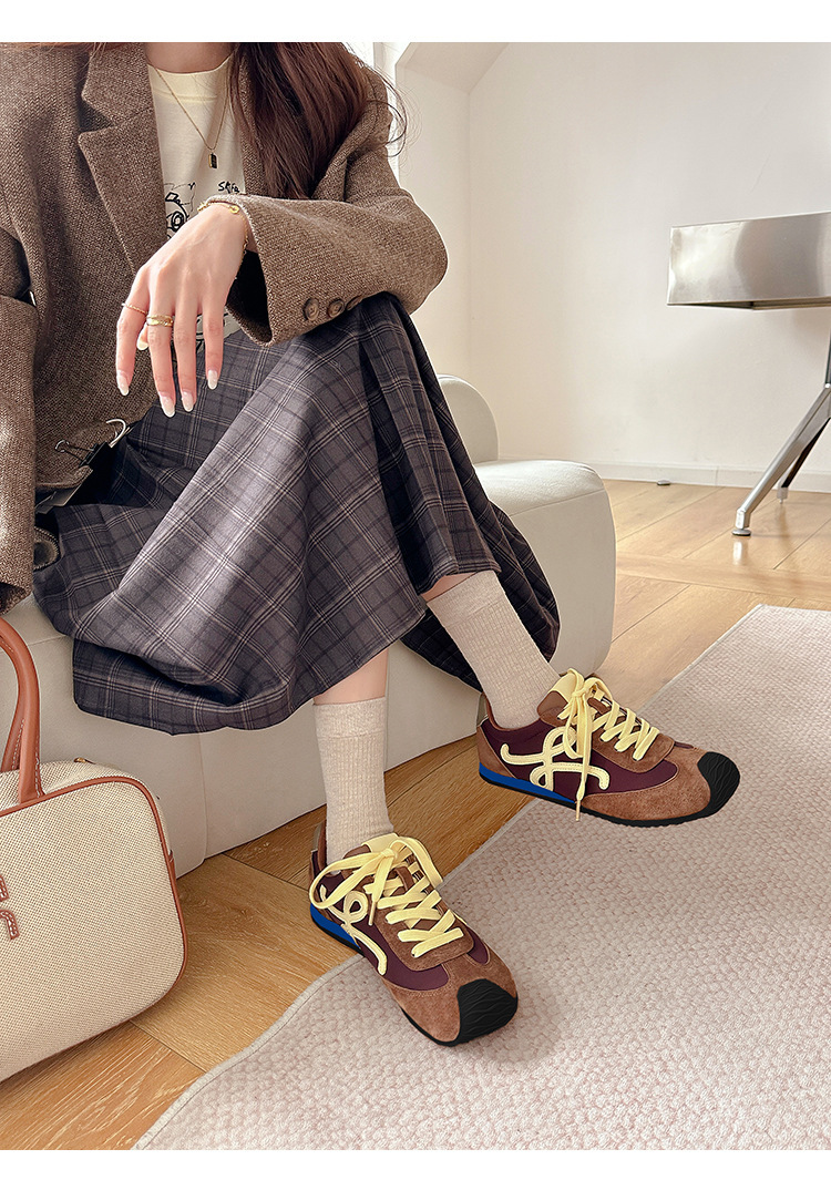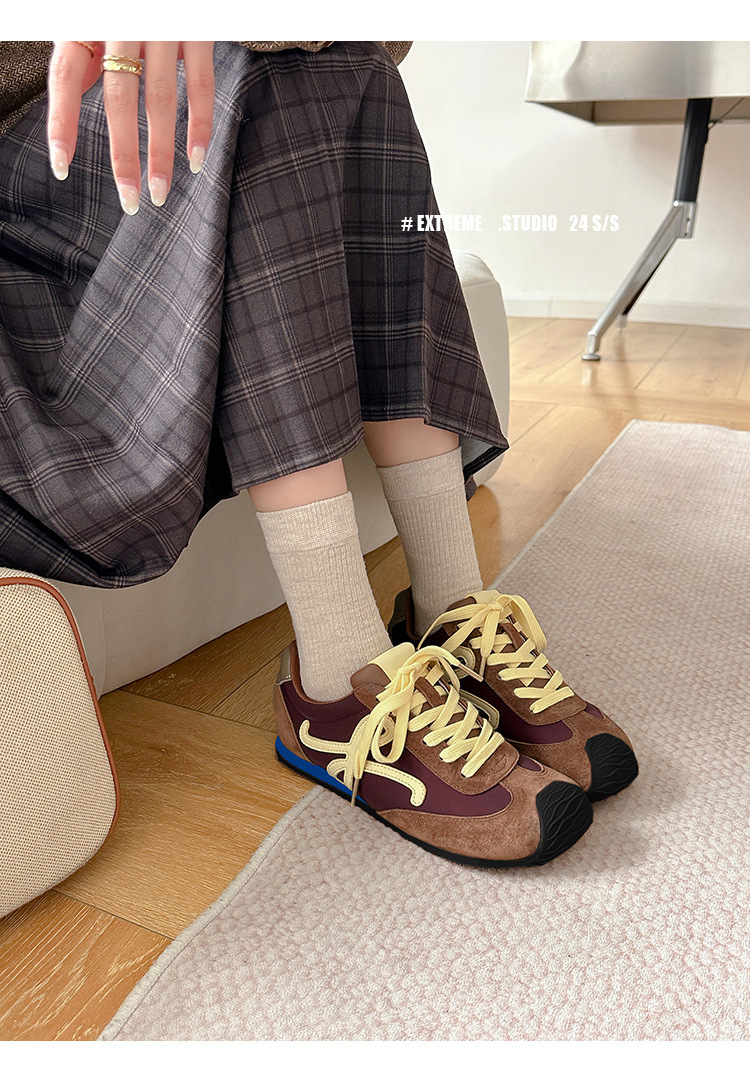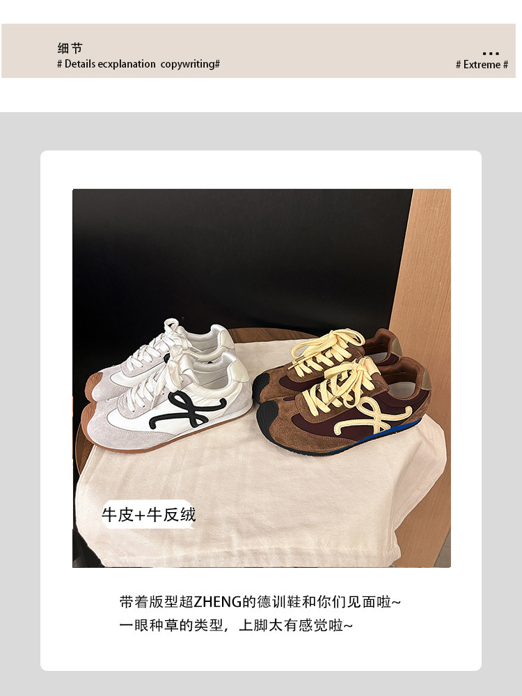 Cowhide 버전 ~ 가죽 평면 독일 훈련 신발 여성 2025 봄 새로운 추악한 사랑스러운 레트로 포레스트 검프 신발 캐주얼 운동화