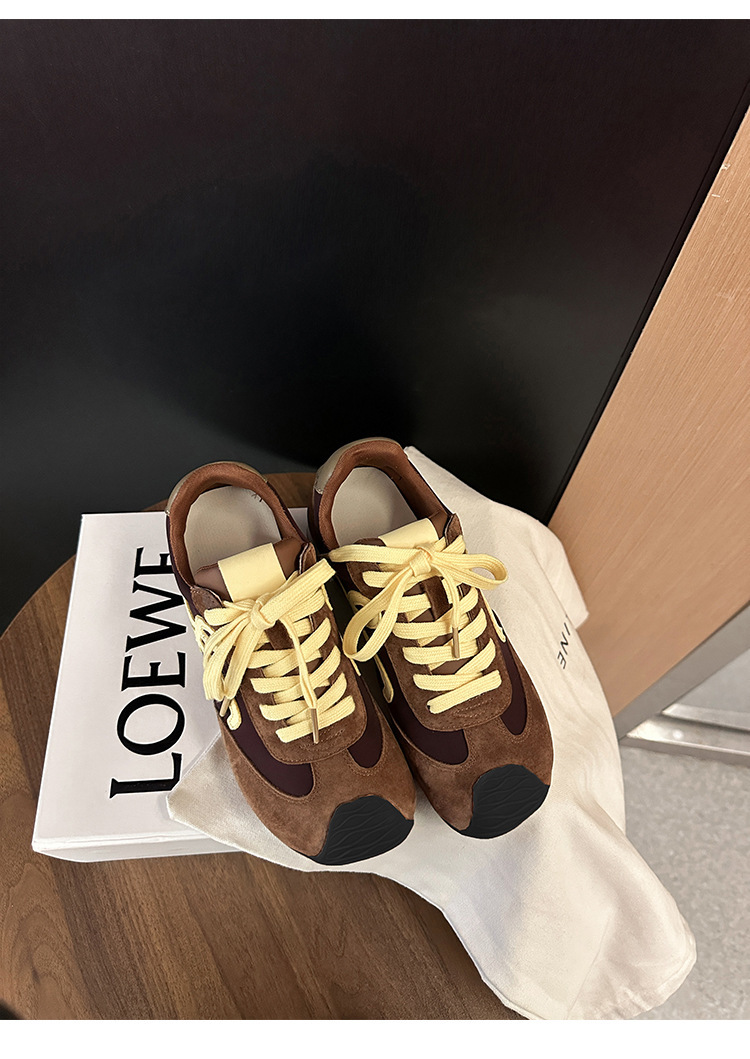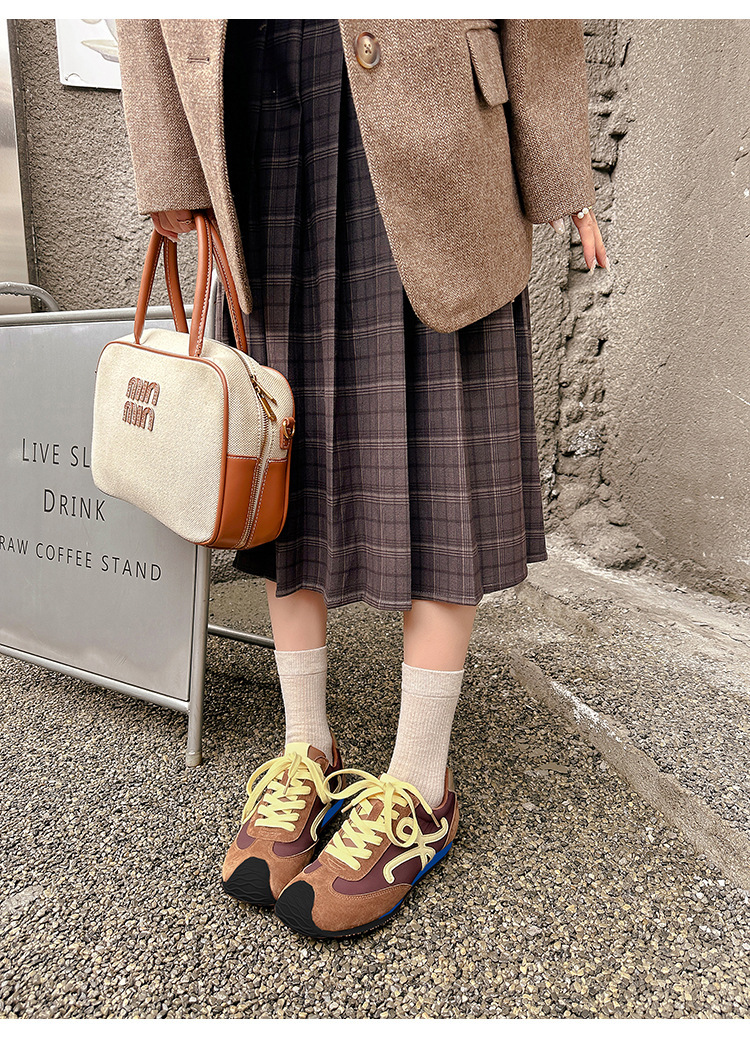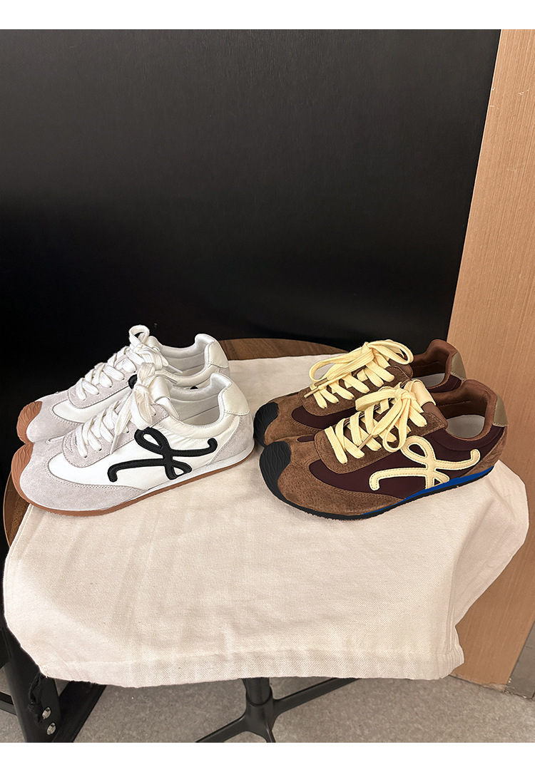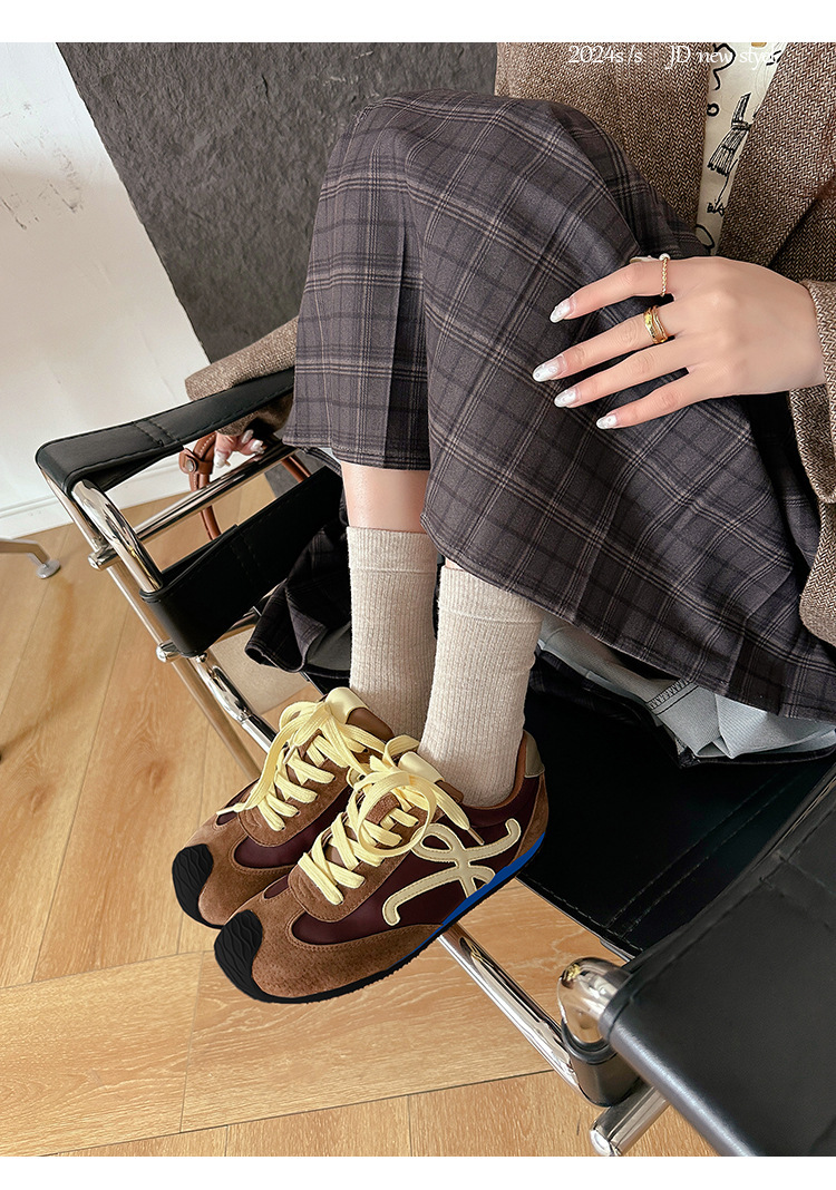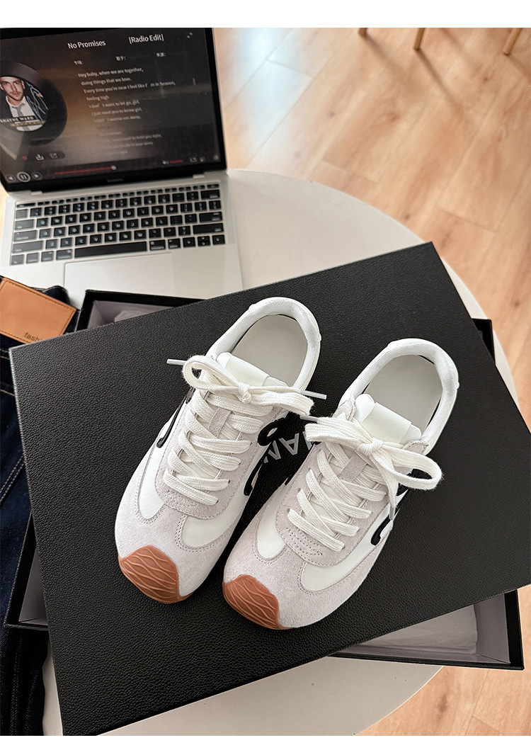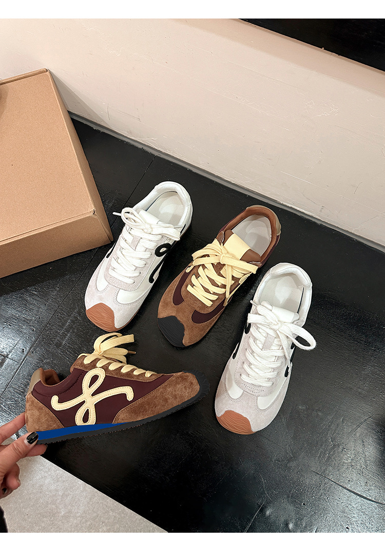 Cowhide 버전 ~ 가죽 평면 독일 훈련 신발 여성 2025 봄 새로운 추악한 사랑스러운 레트로 포레스트 검프 신발 캐주얼 운동화