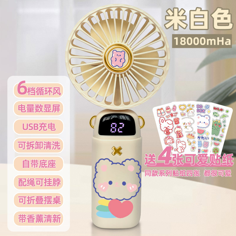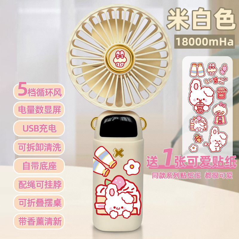 • [스티커 4개 증정] 라이트베이지 래빗 - 5단계 순환풍 - [18000mHA/데스크탑 사용 가능/