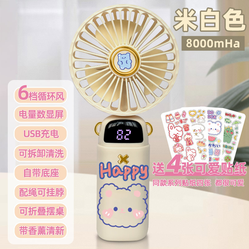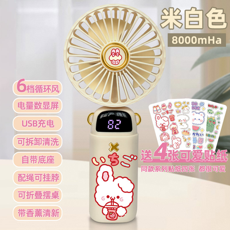 • [스티커 4개 무료] 라이트 베이지 화이트 래빗 - 5단계 순환 바람 - [8000mHA/데스크탑 사용 가능/