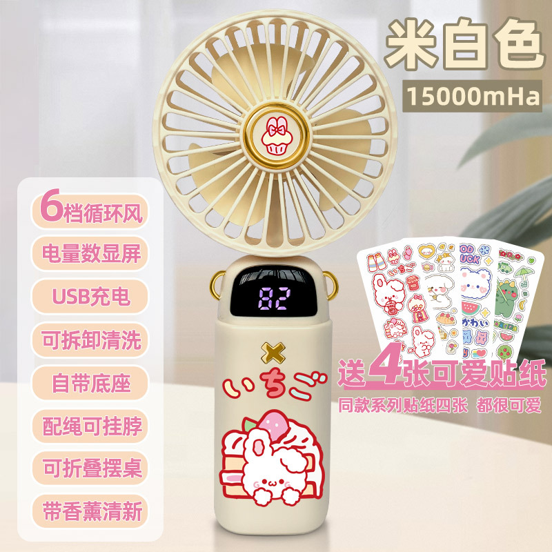 • [스티커 4개 무료] 라이트 베이지 화이트 래빗 - 5단계 순환 바람 - [15000mHA/데스크탑 사용 가능/
