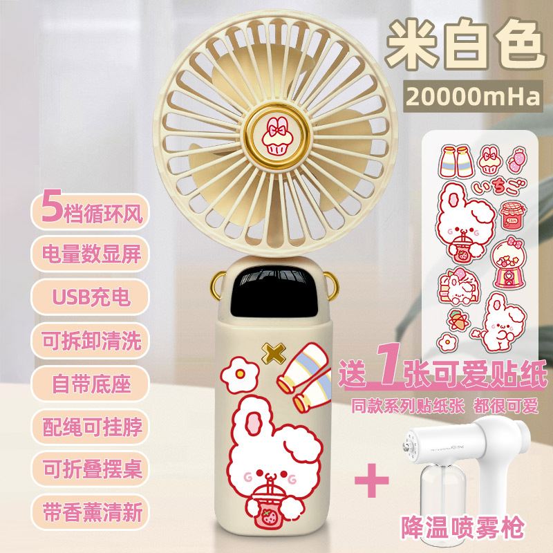 • 상위 버전 [스티커 4개 무료] [라이트 베이지 화이트] 20000mAh + 냉각 얼음물 스프레이